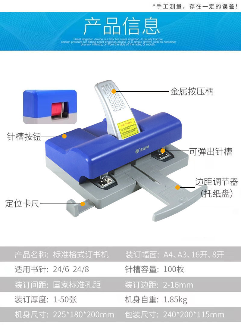이중 헤드 스테이플러 문서 표준 바인딩 기계 이중 행 스테이플러 사무실 두꺼운 층 50 장 용지 대형 스테이플러