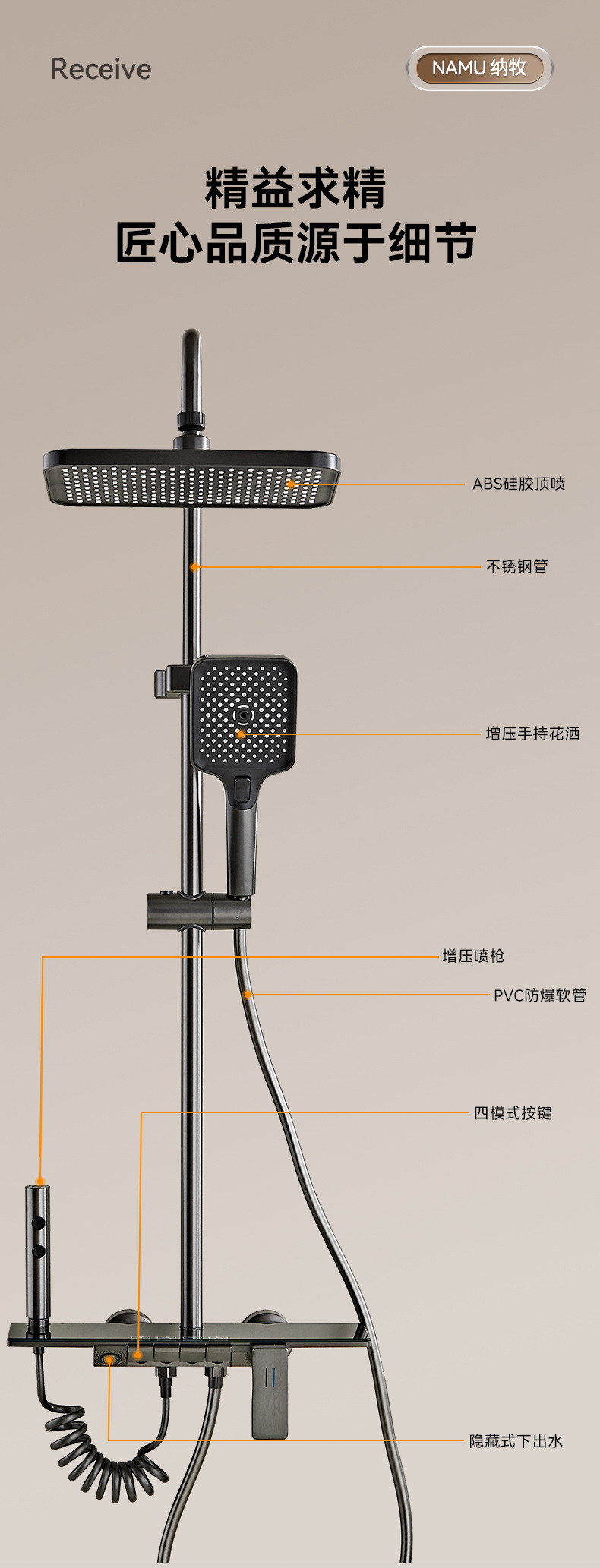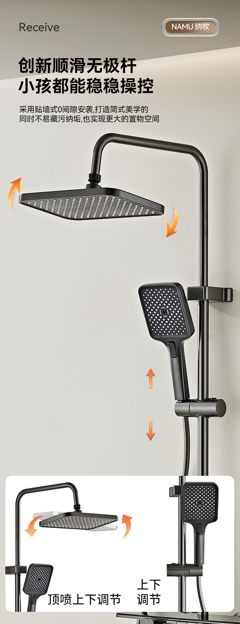 • 확장형 플랫 피아노 샤워 헤드 A
