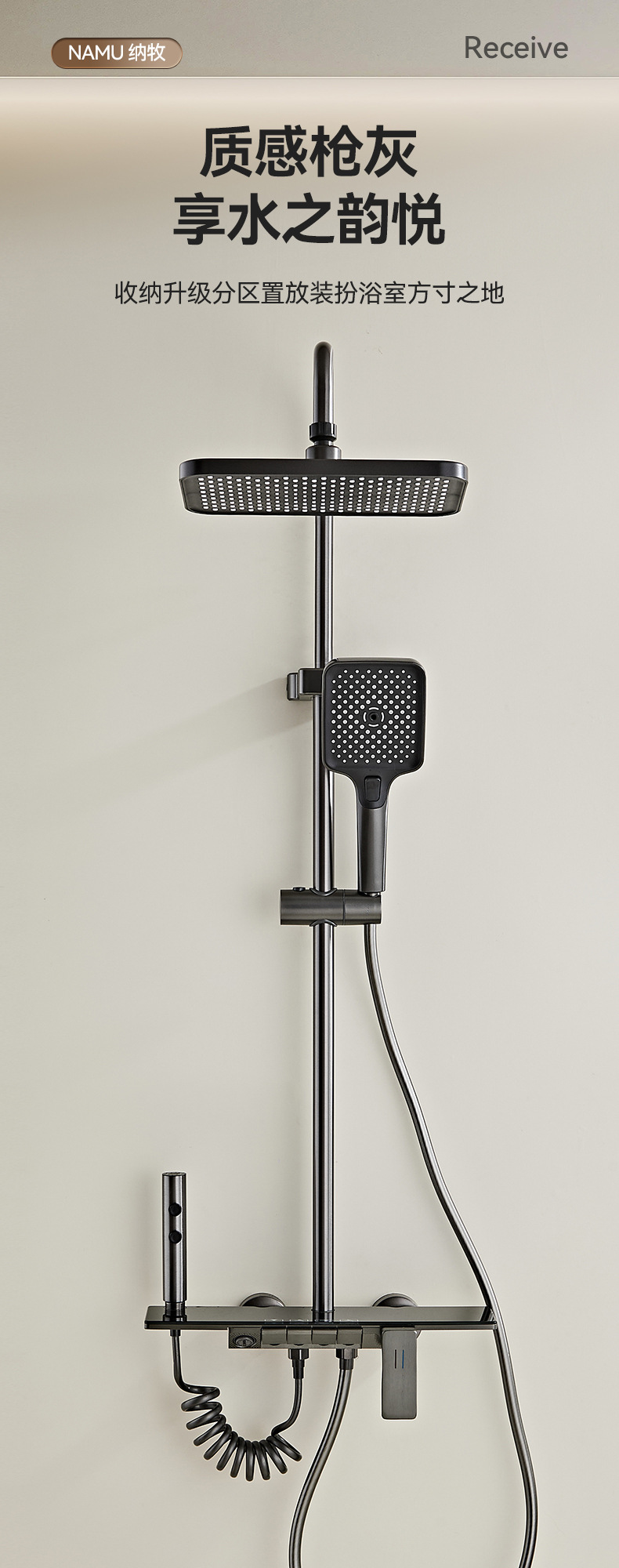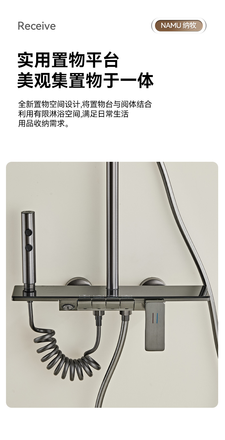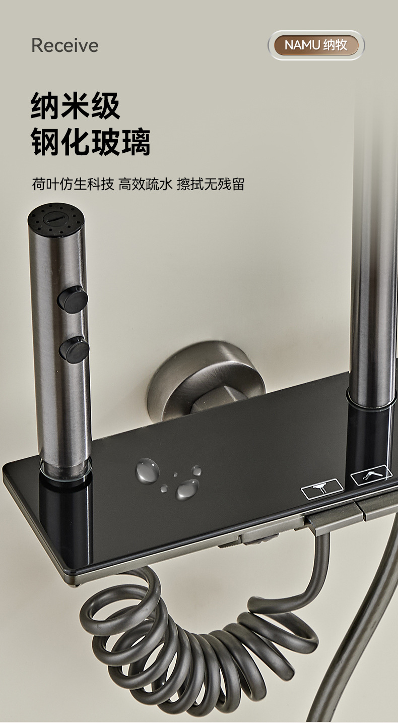 크로스보더 분위기 조명, 숨겨진 샤워기, 건그레이 샤워기, 디지털 디스플레이 샤워기 세트, 드롭쉬핑