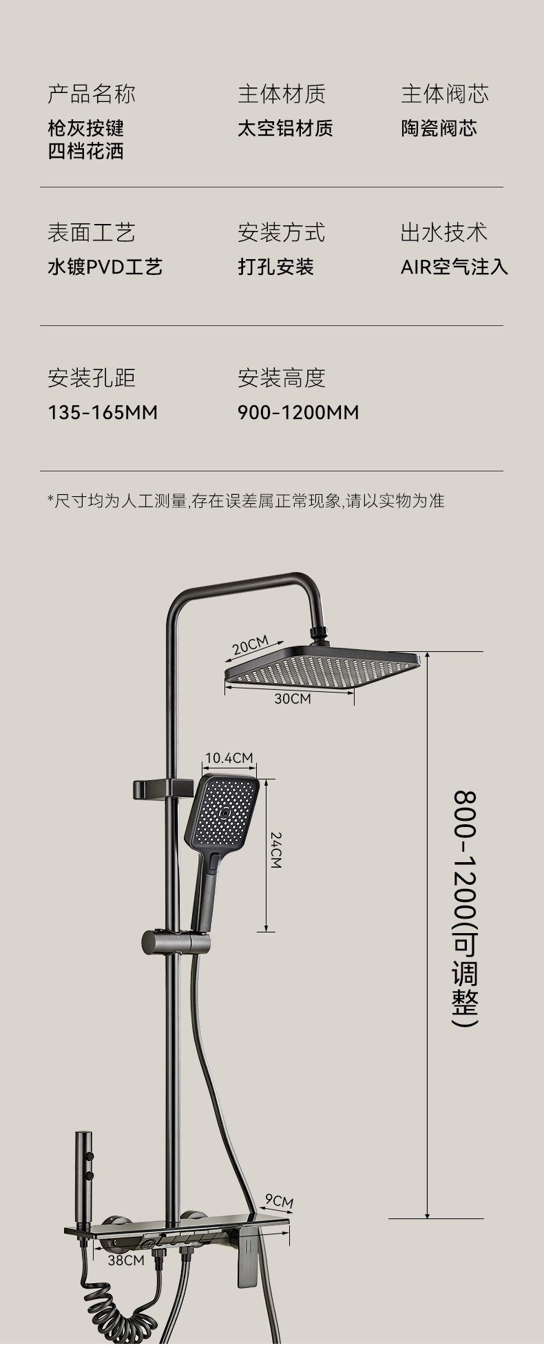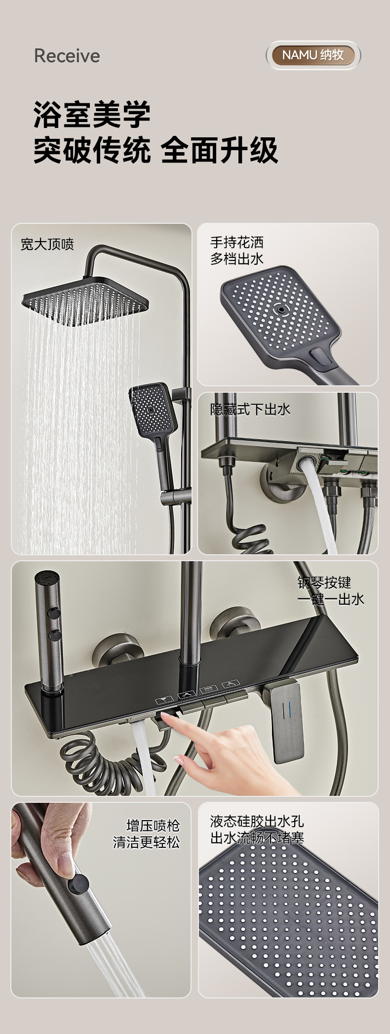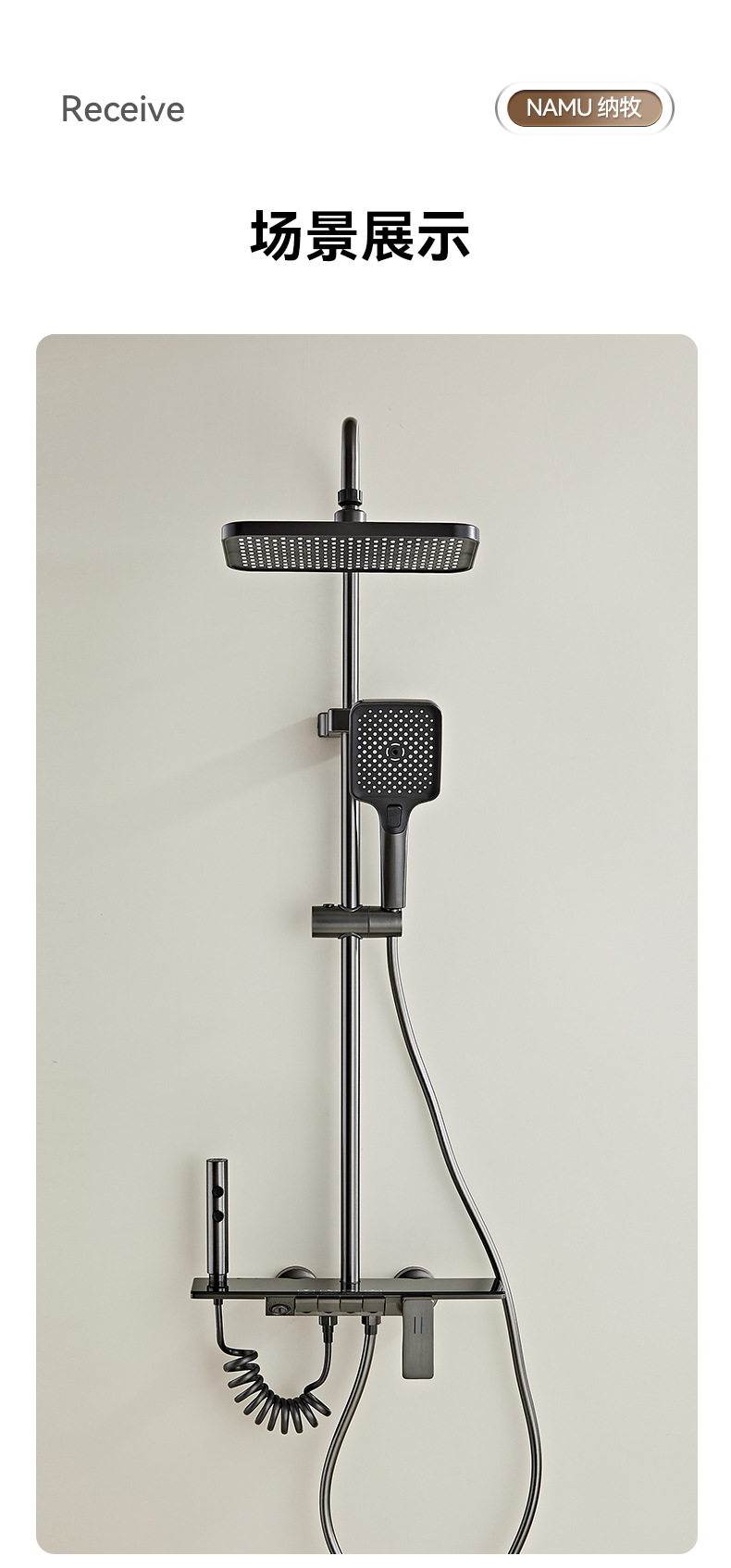 크로스보더 분위기 조명, 숨겨진 샤워기, 건그레이 샤워기, 디지털 디스플레이 샤워기 세트, 드롭쉬핑