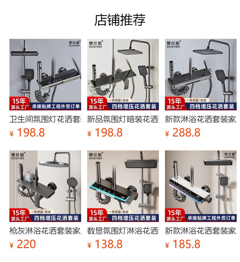 크로스보더 분위기 조명, 숨겨진 샤워기, 건그레이 샤워기, 디지털 디스플레이 샤워기 세트, 드롭쉬핑스토어 가기