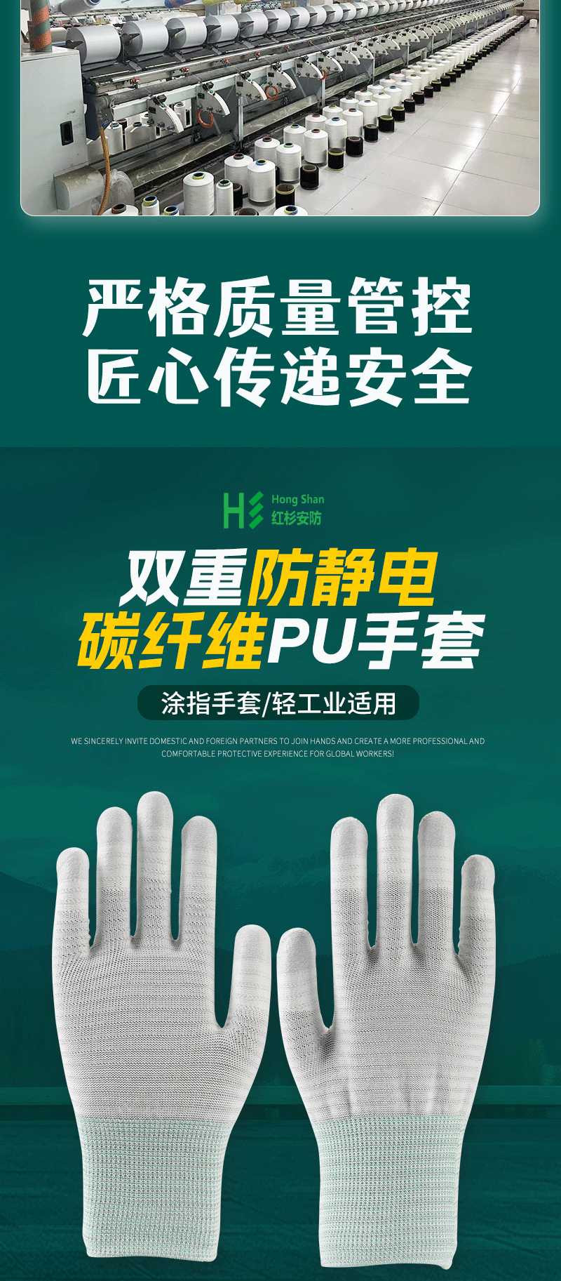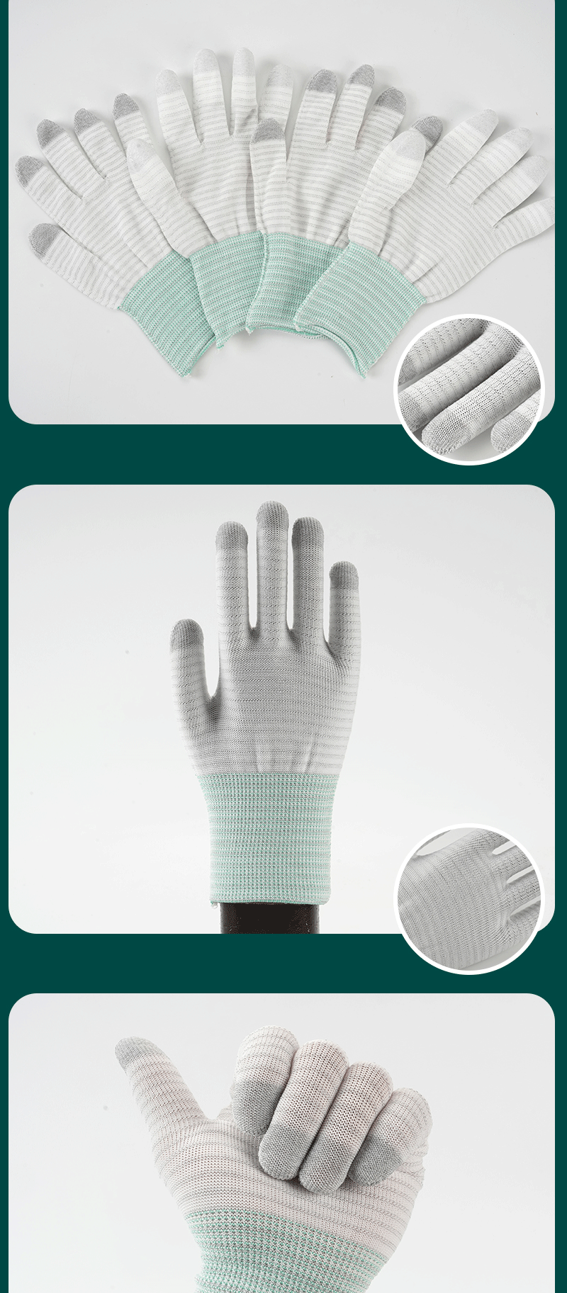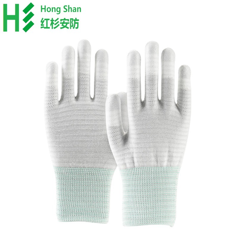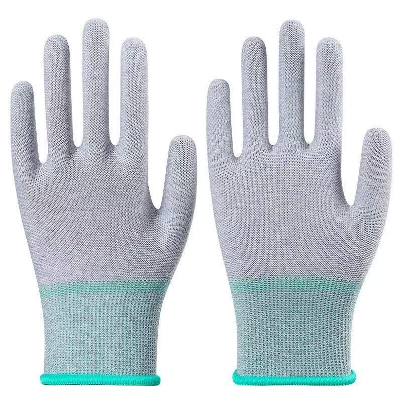 물결무늬 탄소섬유 PU 정전기 방지 손가락 코팅 미끄럼 방지 내마모성 작업용 통기성 안전 장갑 (전자공장용)