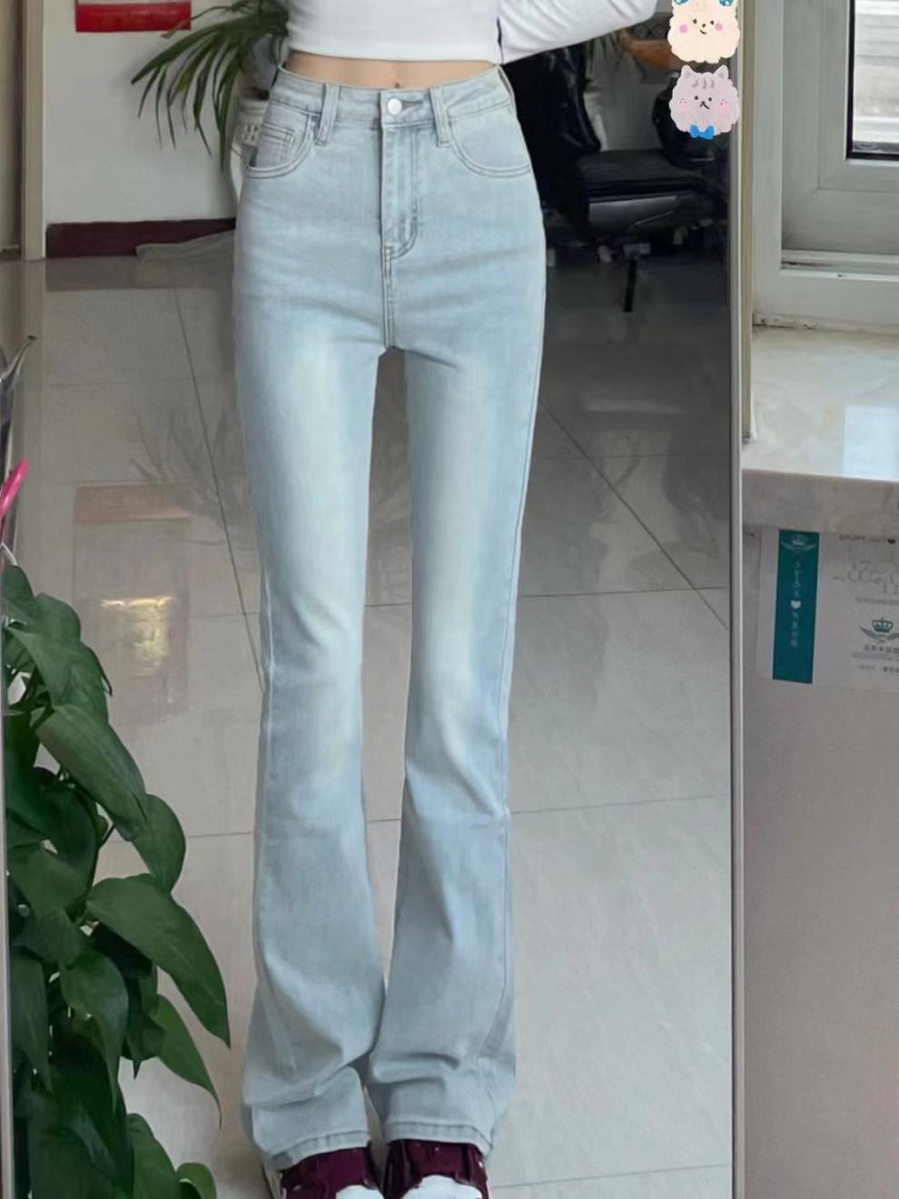 145 Shorty X 크기 밝은 색상의 마이크로 라드 청바지 여성의 가을 및 여름 슬림 핏 스트레치 슬림 핏 트럼펫 트렌디 인스타그램 바지스토어 가기