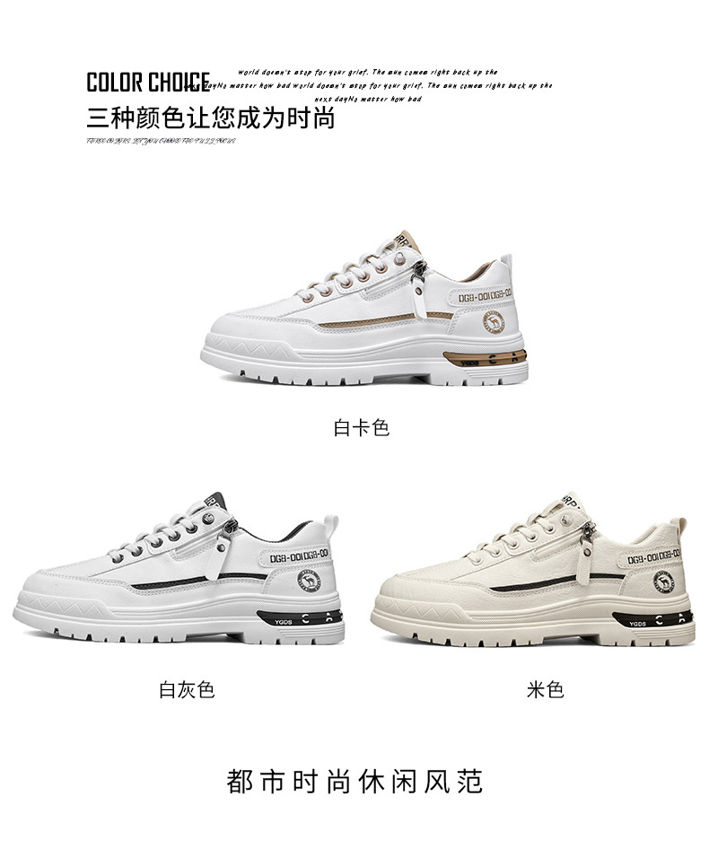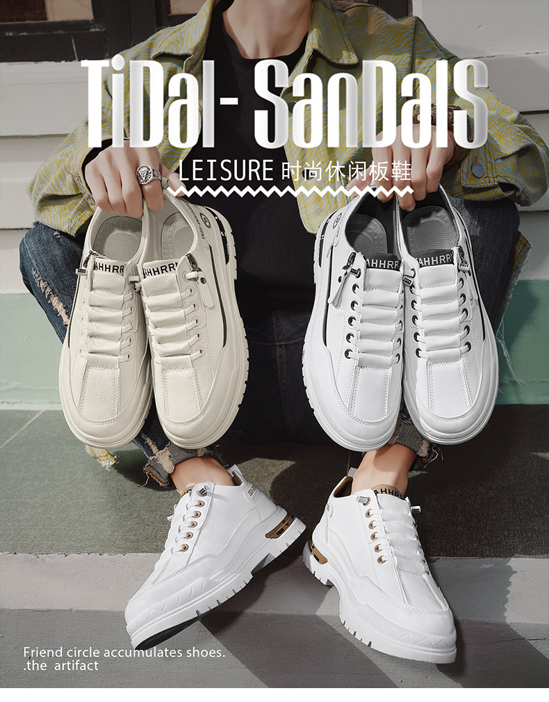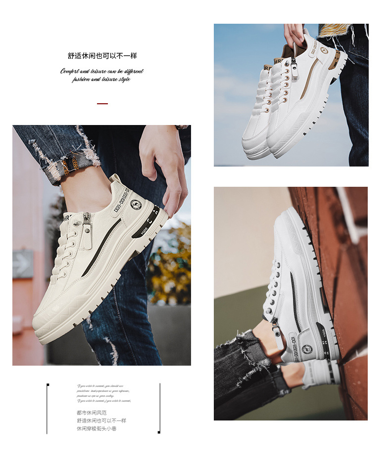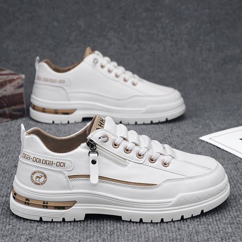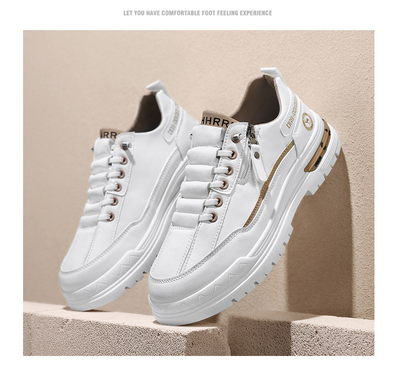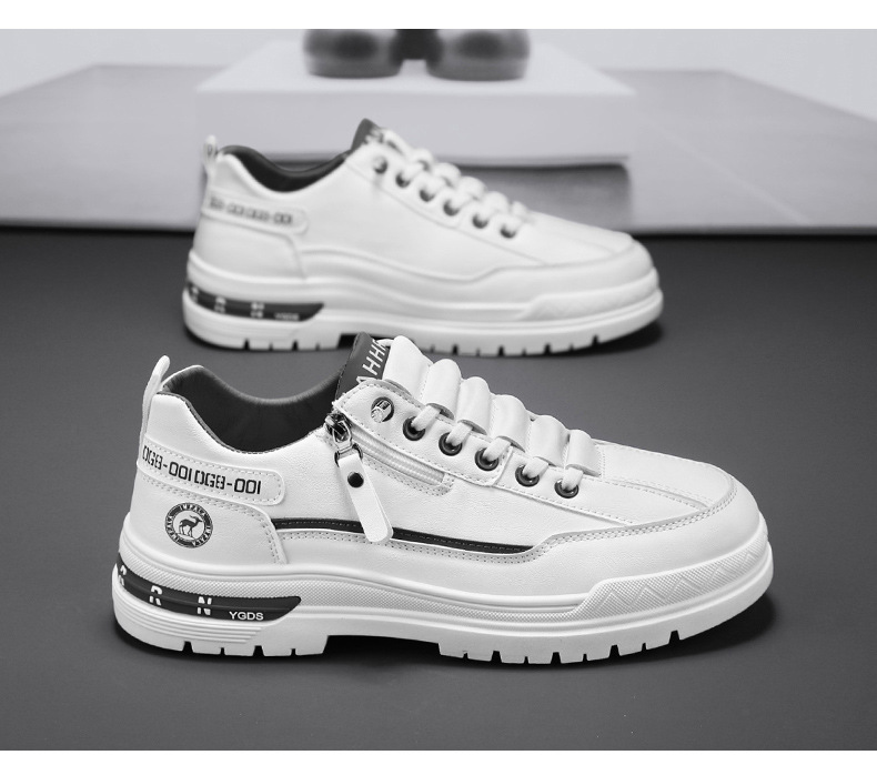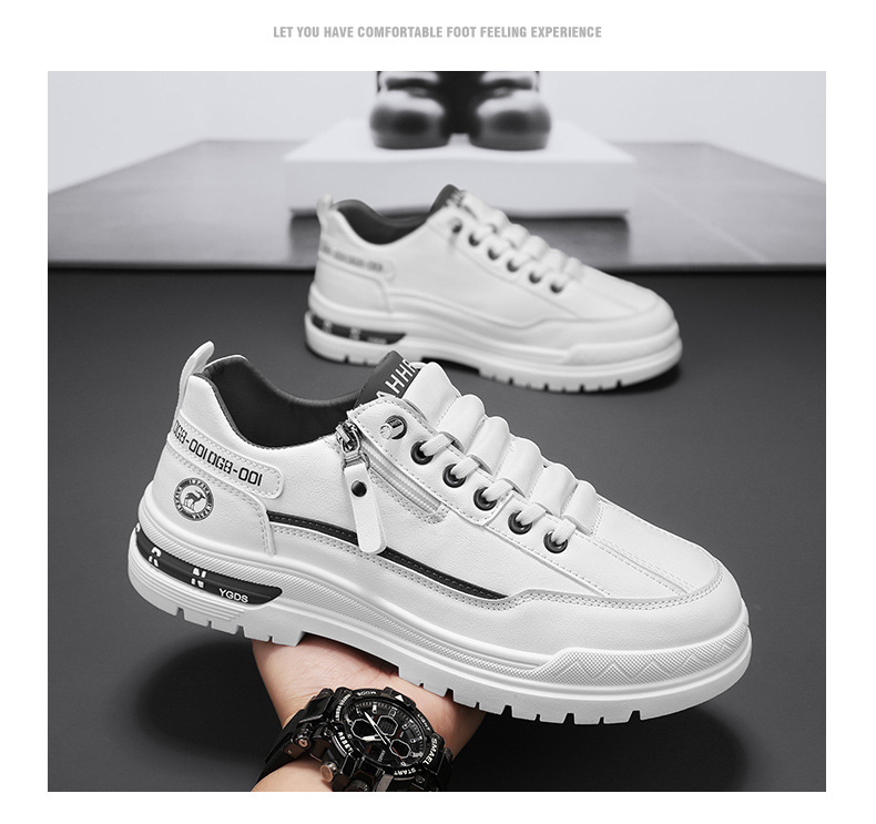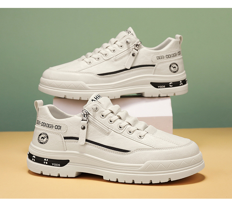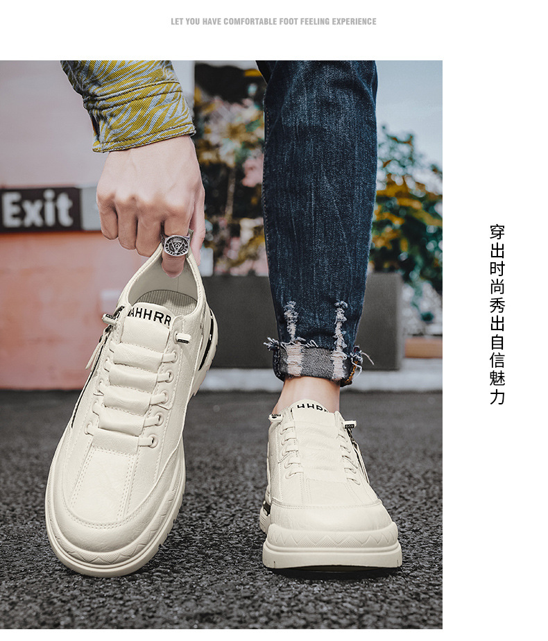 여름 남성 신발 2025 뉴 사이드 지퍼 남자 올 매치 캐주얼 가죽 신발 스포츠 플랫 작은 흰색 유행 신발 스케이트 신발스토어 가기