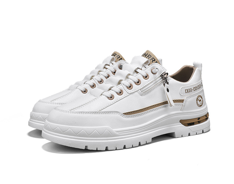 여름 남성 신발 2025 뉴 사이드 지퍼 남자 올 매치 캐주얼 가죽 신발 스포츠 플랫 작은 흰색 유행 신발 스케이트 신발