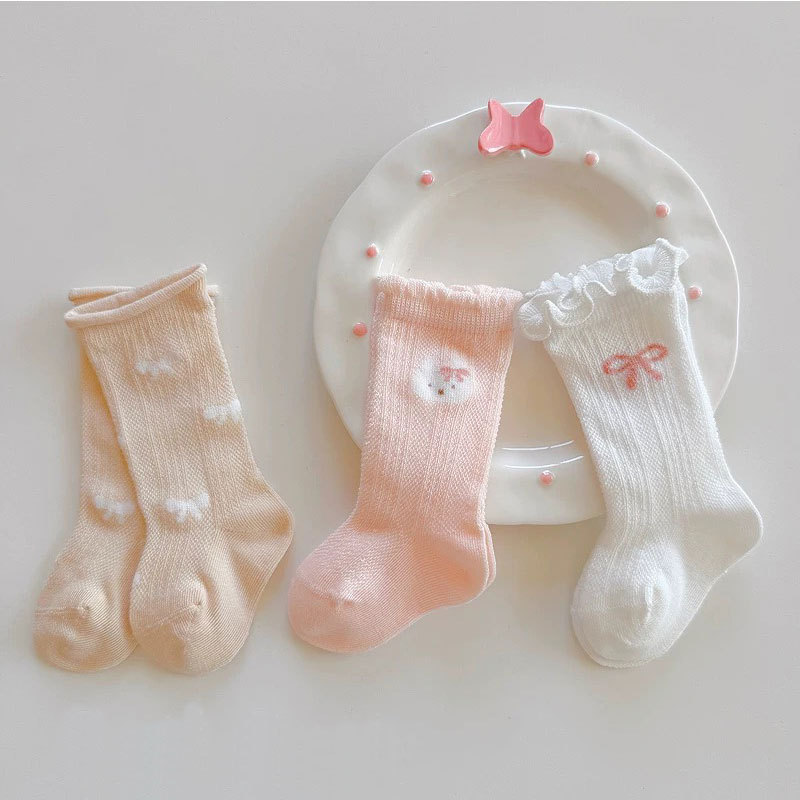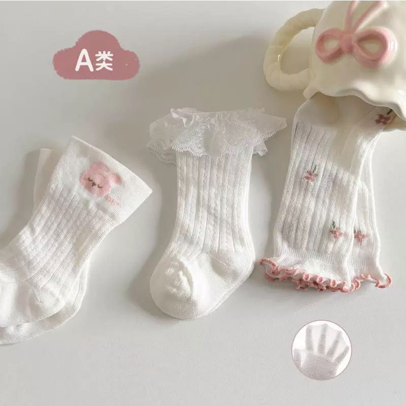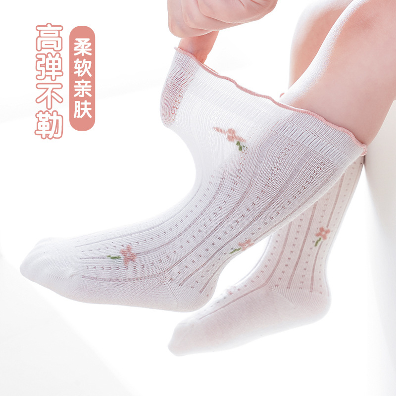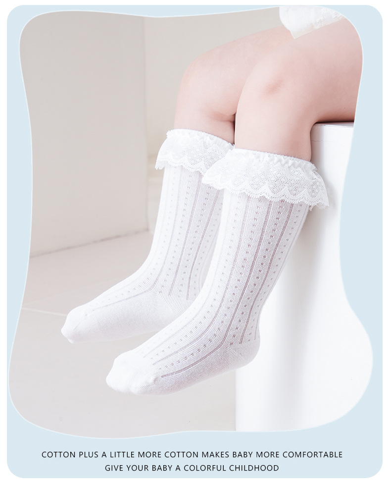 아기 양말 봄과 여름 전체 빗질 코튼 메쉬 얇은 아기 높은 스타킹 레이스 소녀의 공주 안티 모기 양말