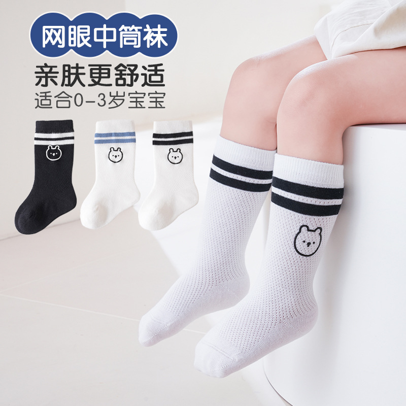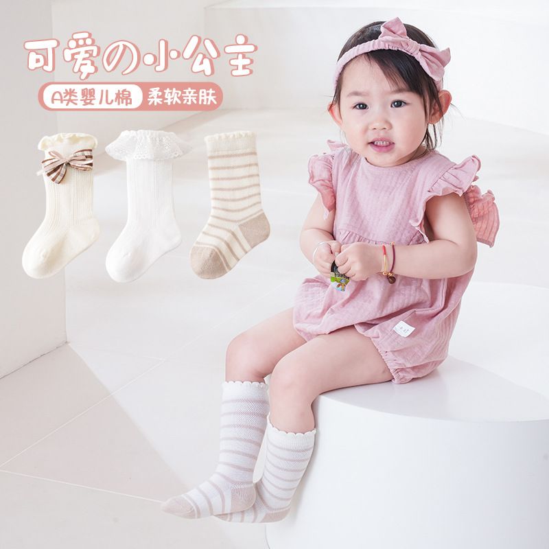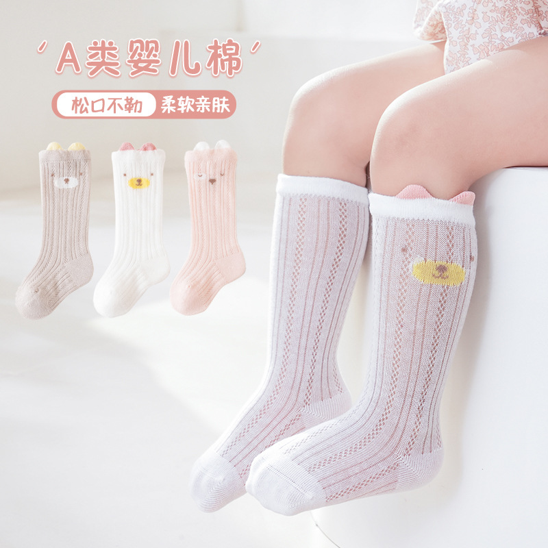 아기 양말 봄과 여름 전체 빗질 코튼 메쉬 얇은 아기 높은 스타킹 레이스 소녀의 공주 안티 모기 양말스토어 가기