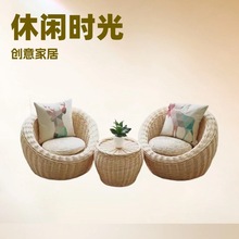 卧室阳台藤椅组合三件套休闲田园单人懒人沙发个性创意