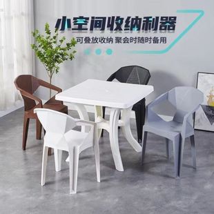 沙滩加厚塑料餐桌椅餐桌桌椅组合圆桌户外烧烤夜市大排档桌子