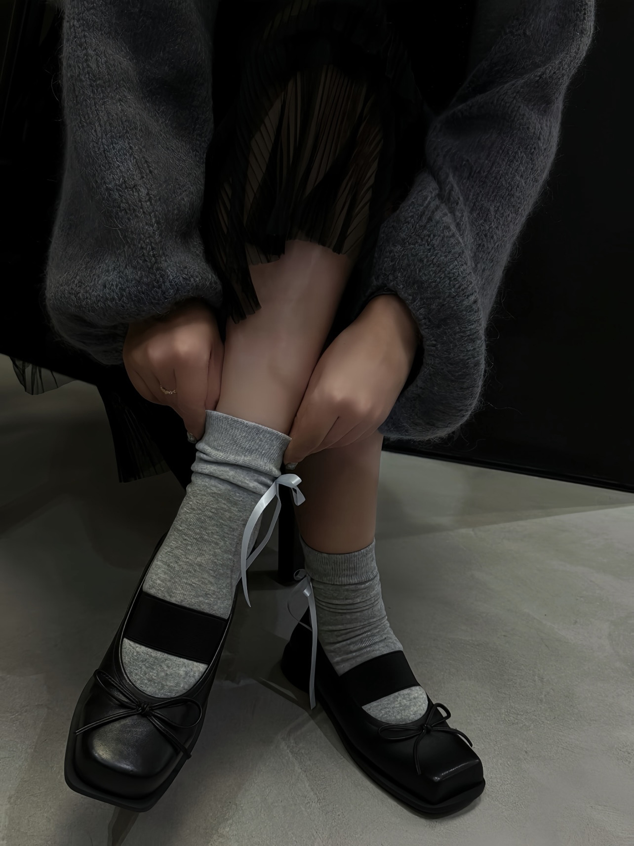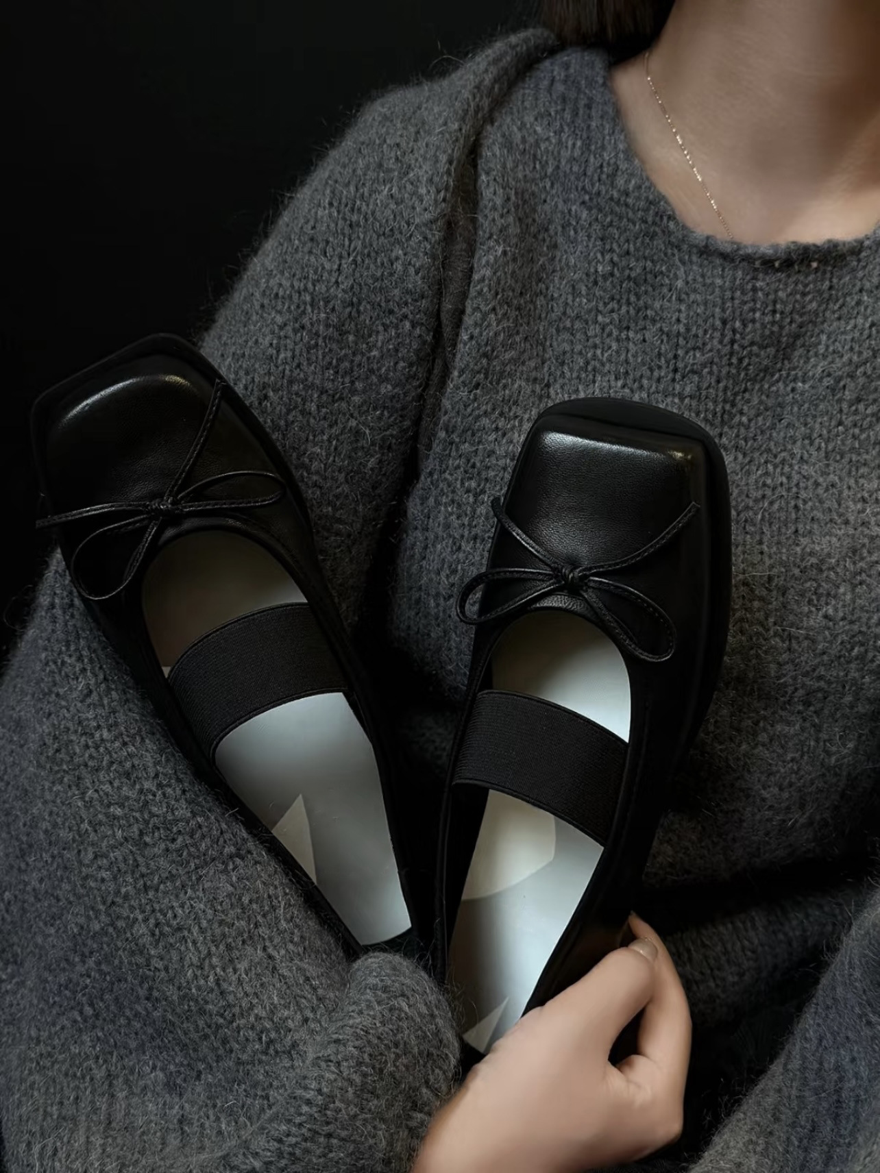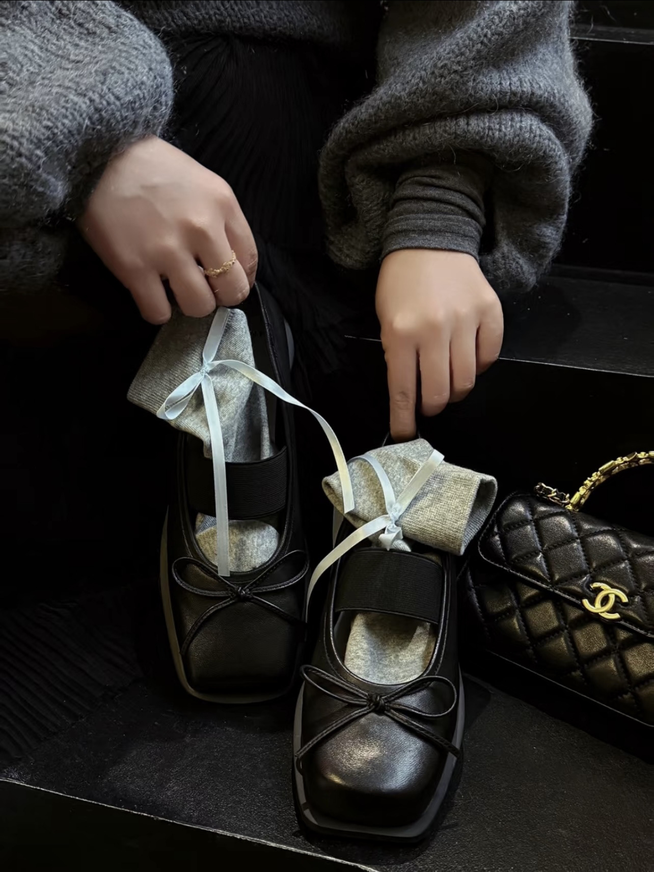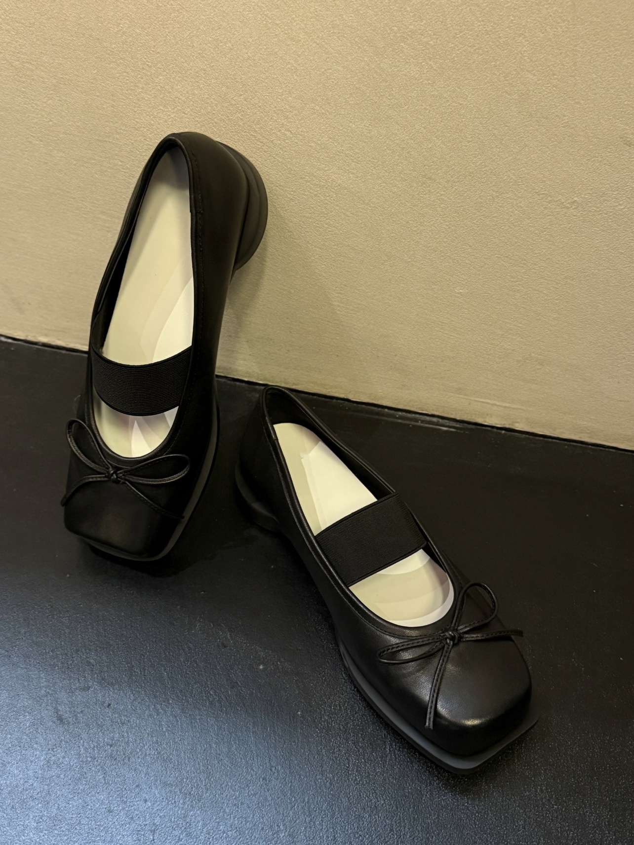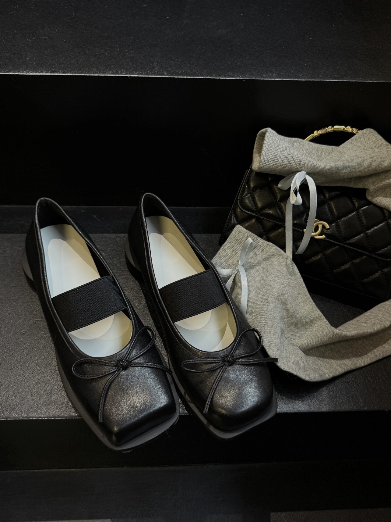 봄과 여름 새로운! 사각 발가락 낮은 입 Mary Jane 신발 여성의 새로운 활 가죽 발레 플랫폼 신발스토어 가기