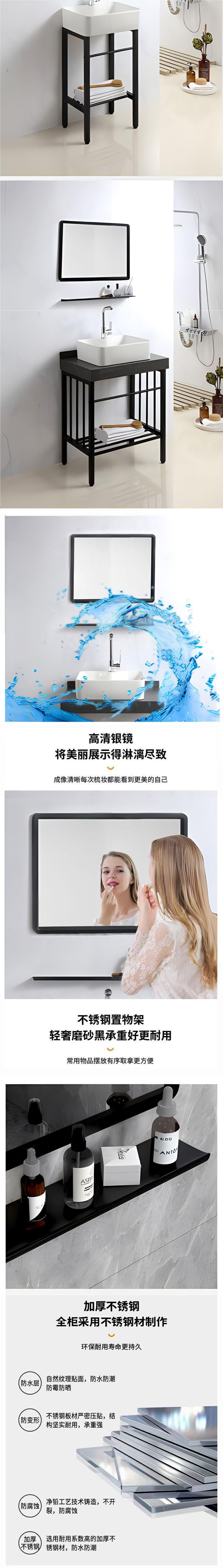 • 수도꼭지 구멍이 없는 세면대 + 블랙 스탠드 배수구 + 거울