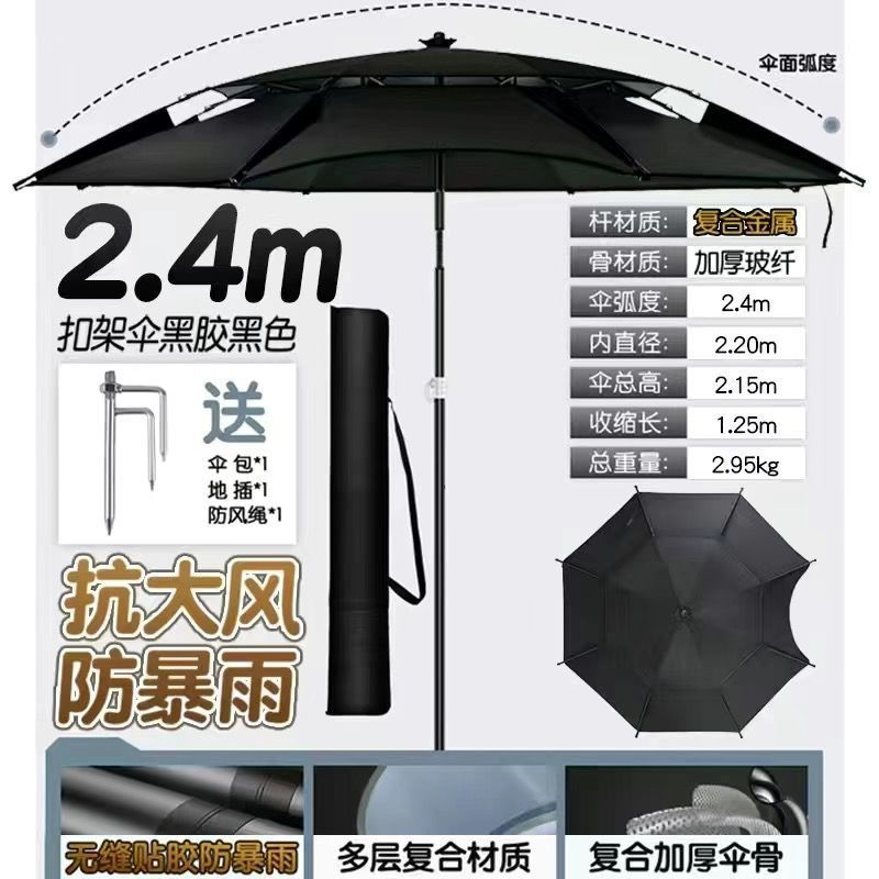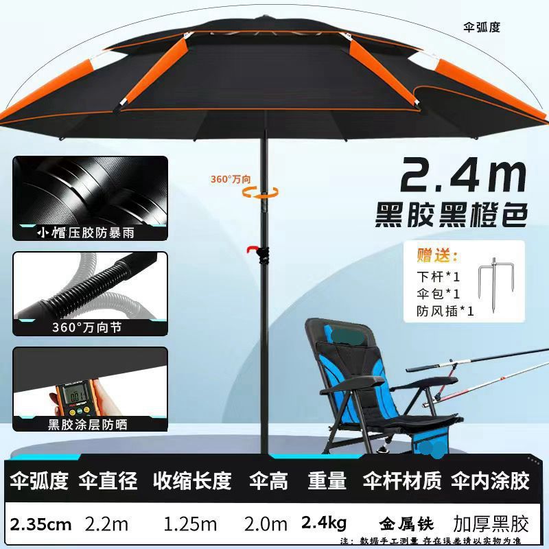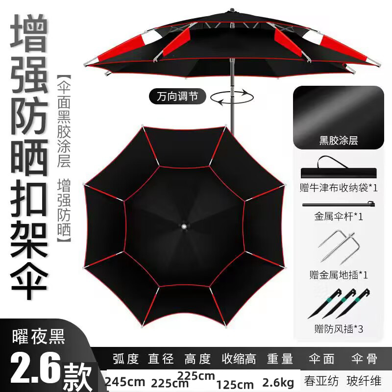 2025 낚시 유니버설 비바람에 검은 고무 낚시 우산 폭풍우 방지 양산 우산 낚시스토어 가기