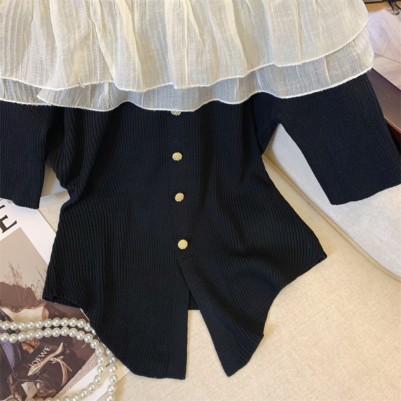 프렌치 컬러 대비 러플 반팔 어깨 셔츠 여성 여름 디자인 센스 니쉬 독특한 세련된 아름다운 탑스토어 가기