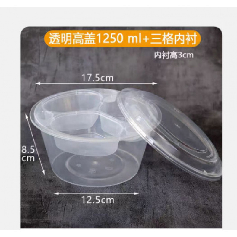 • 1250ml 투명 평면 뚜껑 + 3칸 안감 200세트