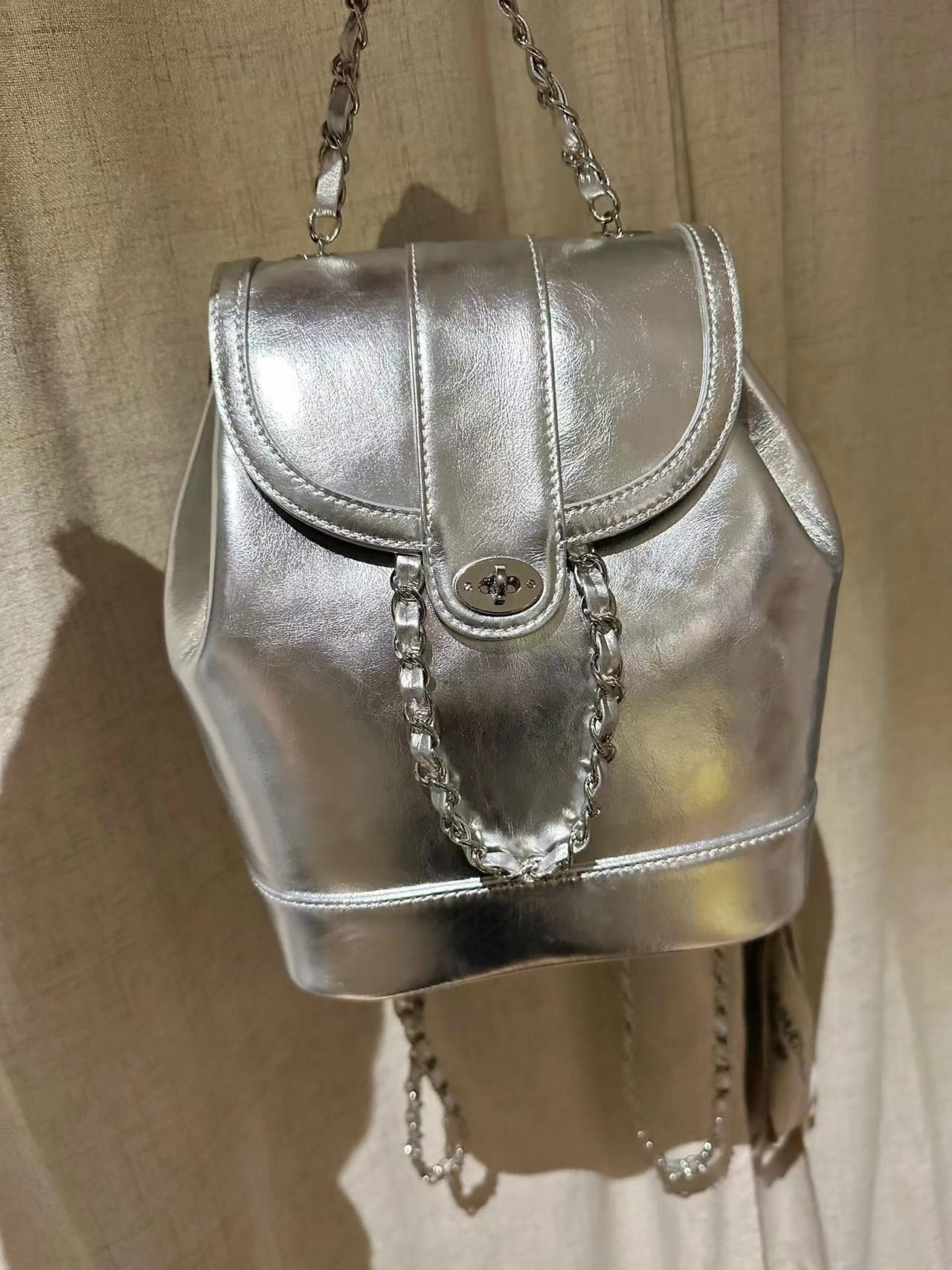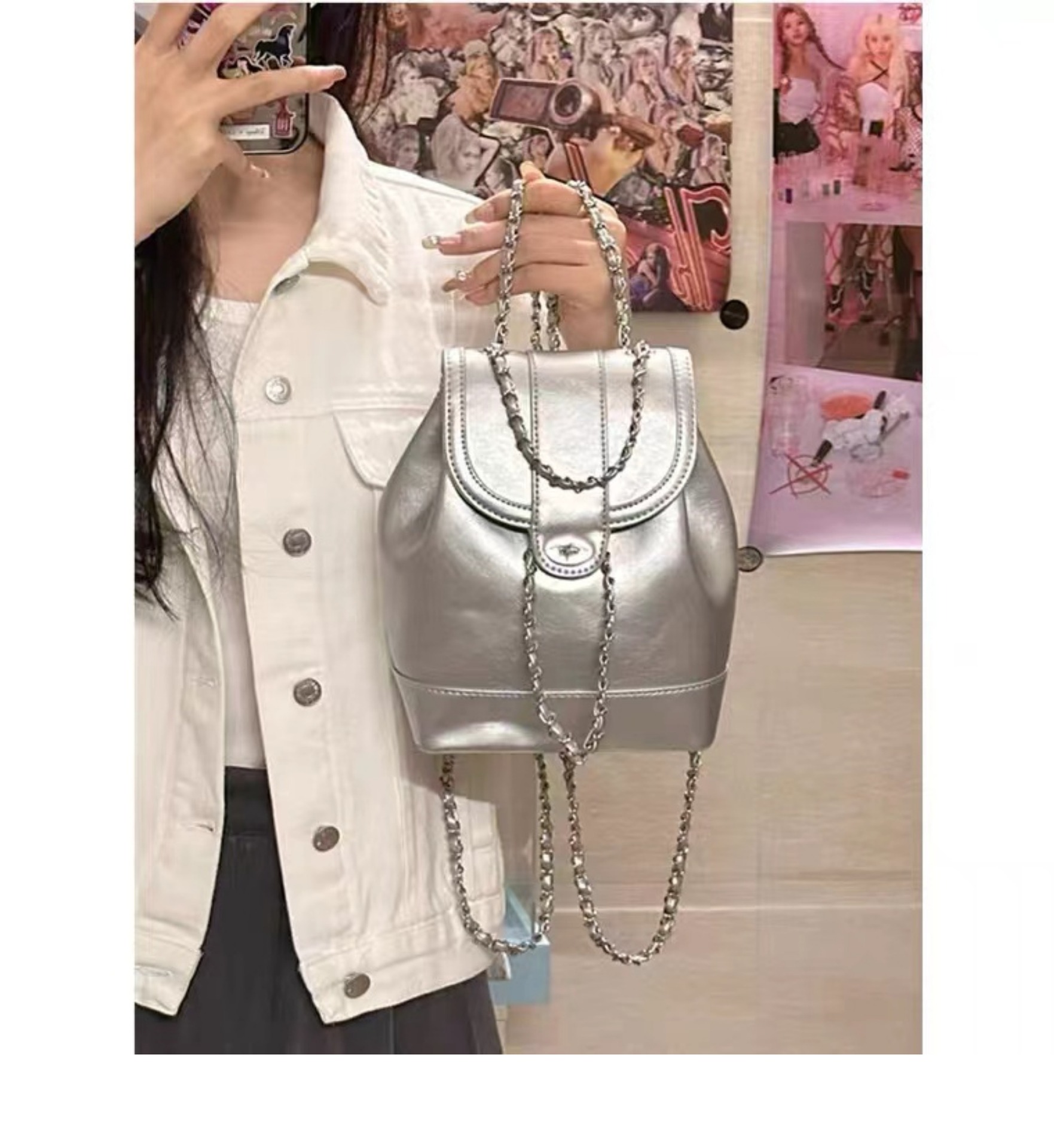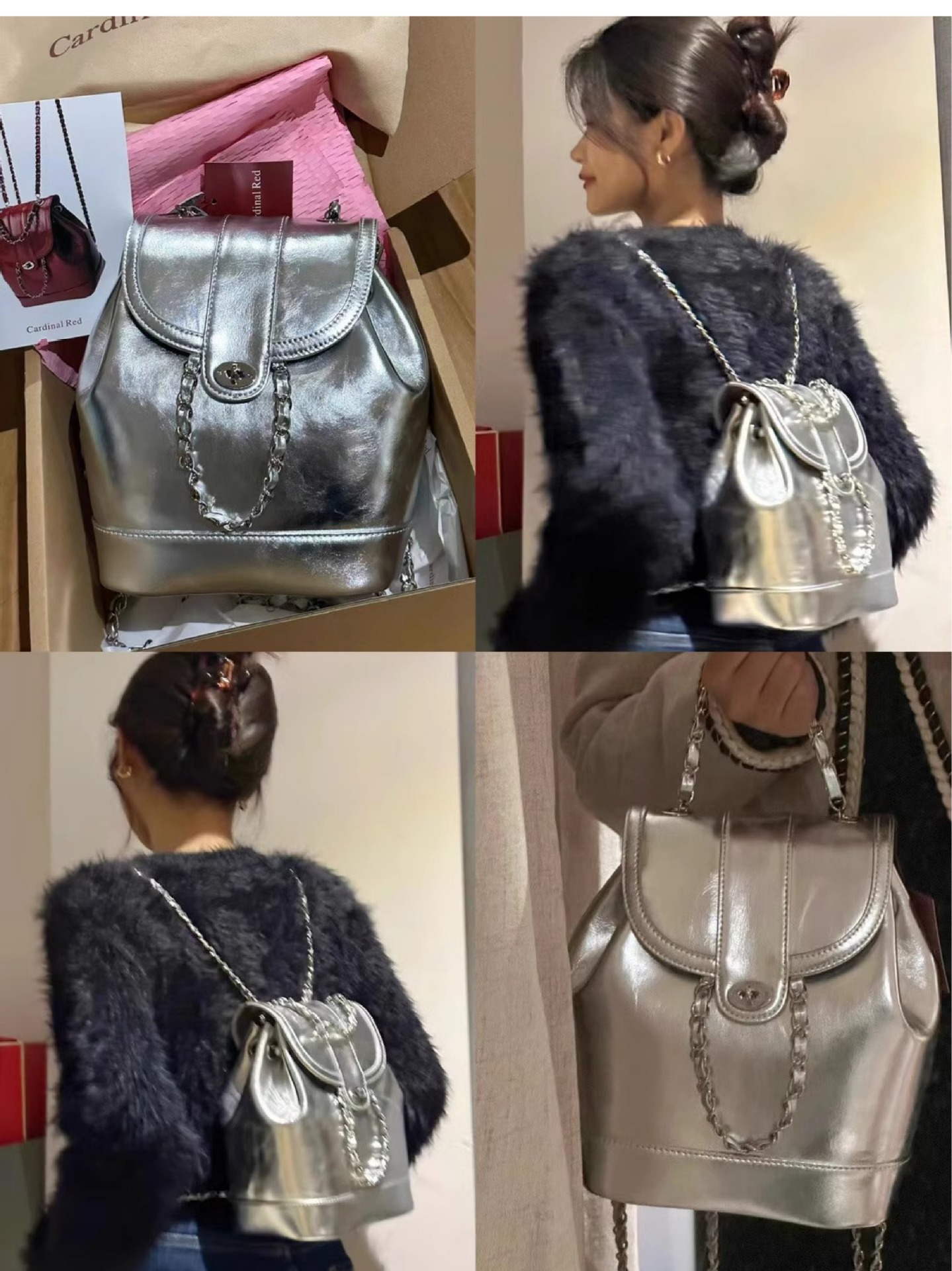 샤넬 스타일 체인 배낭 여성의 2025 새로운 레드 북 슈퍼 파이어 배낭 학생 인기있는 오일 왁스 가죽 어깨 가방스토어 가기