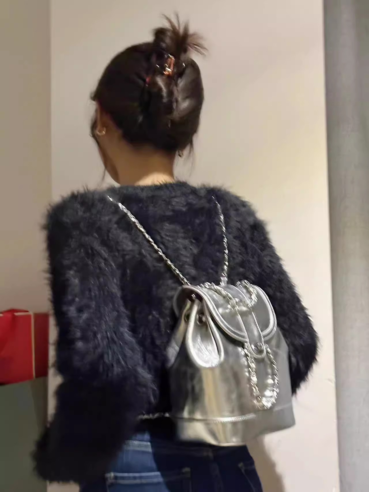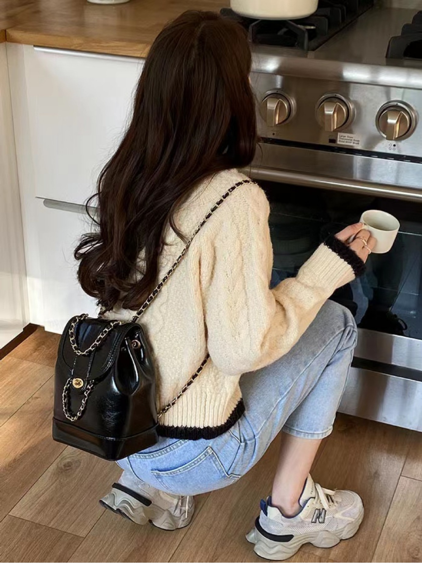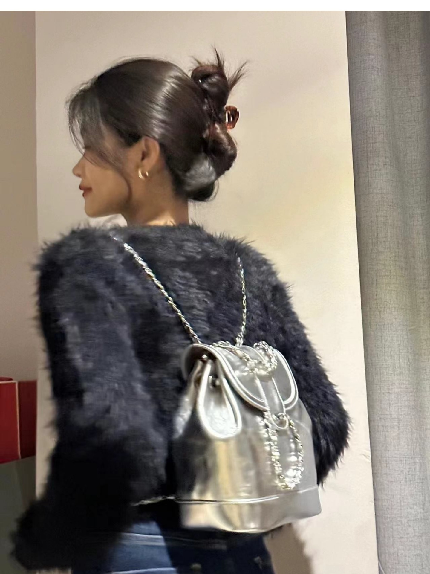 샤넬 스타일 체인 배낭 여성의 2025 새로운 레드 북 슈퍼 파이어 배낭 학생 인기있는 오일 왁스 가죽 어깨 가방스토어 가기