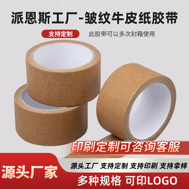 공장 도매 전체 상자 주름진 크래프트 종이 테이프 재고 끈적 끈적한 충분히 인쇄 가능한 테이프를 사용하여 여러 번 밀봉 할 수 있습니다스토어 가기