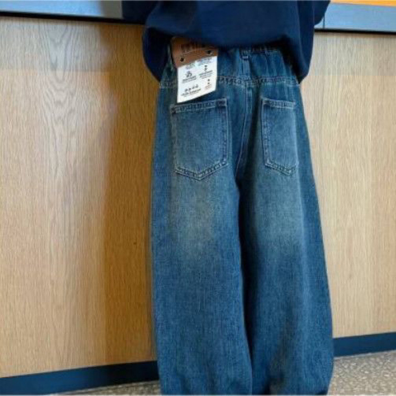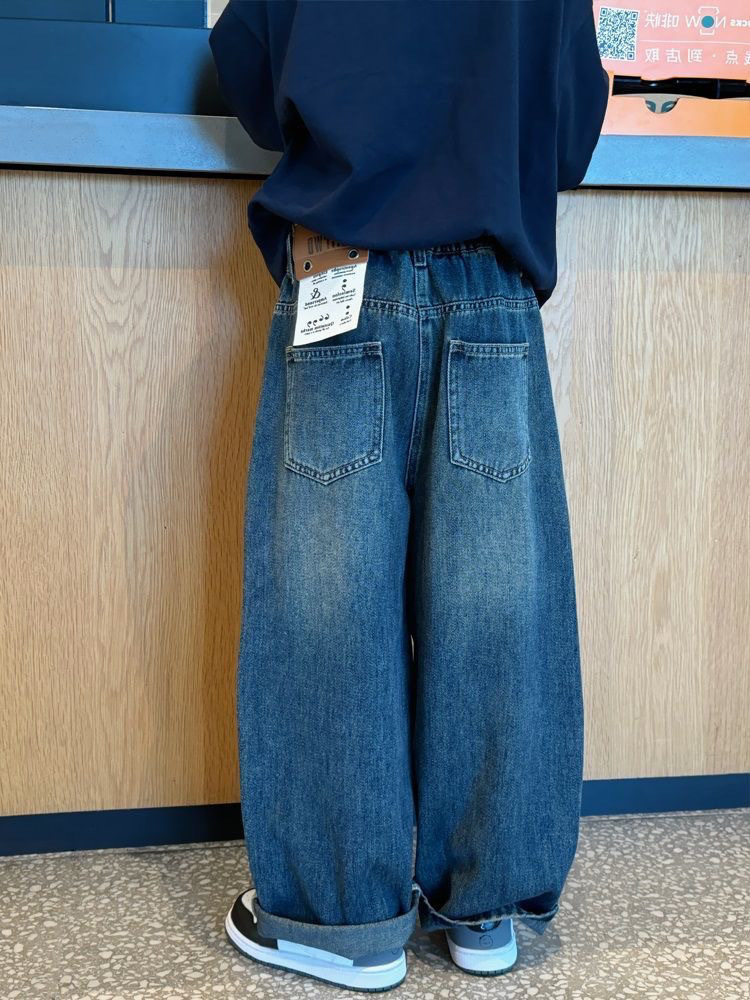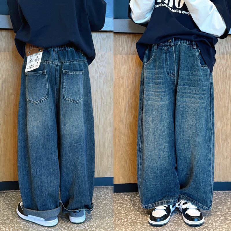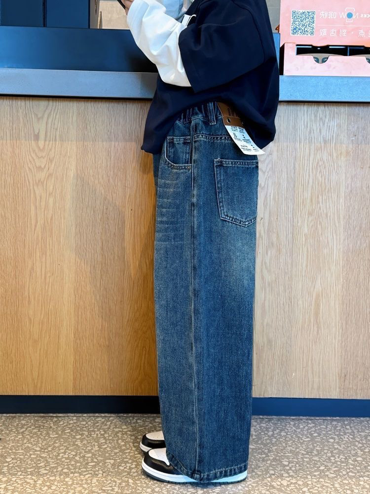 남학생과 여학생의 스트레이트 레그 청바지 느슨한 2025 봄 올매치 학생의 느슨한 긴 다리 맞춤형 어린이 바지스토어 가기