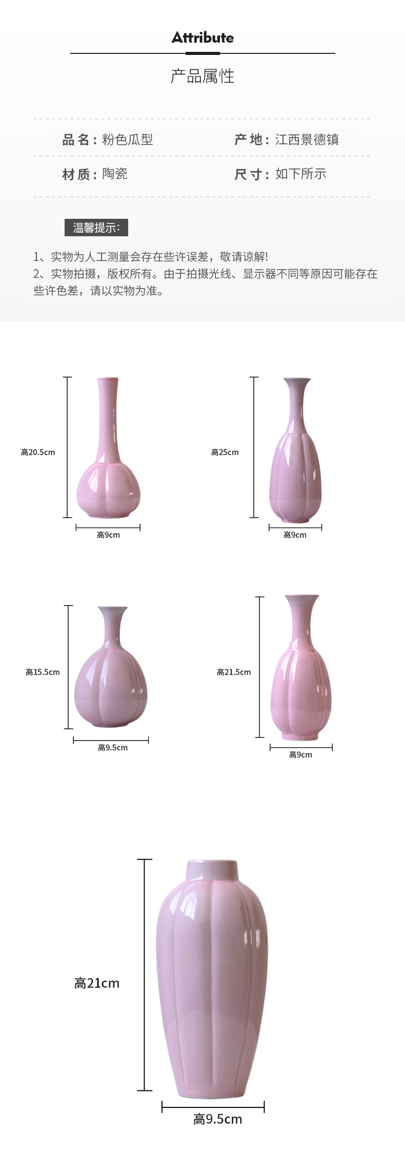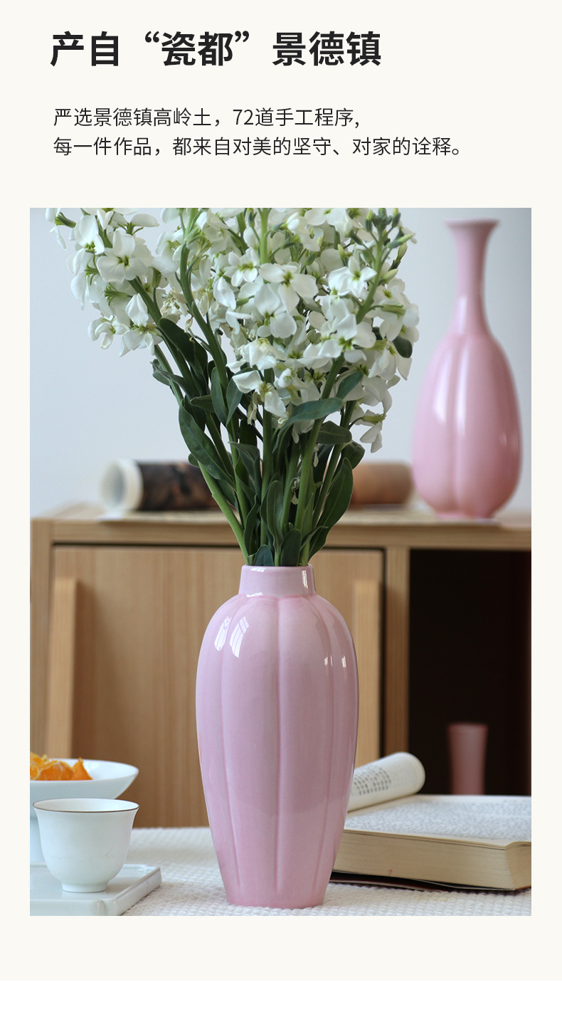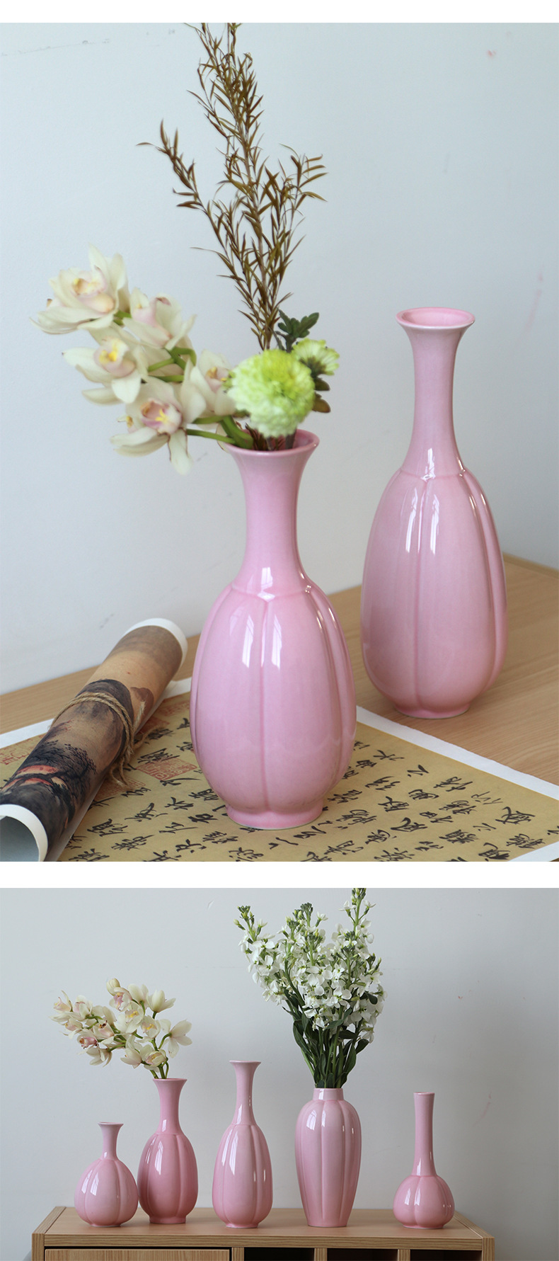Jingdezhen 세라믹 꽃병 중국 꽃병 송의 미학 부드러운 장식 수경 꽃 핑크 멜론 가장자리 병스토어 가기