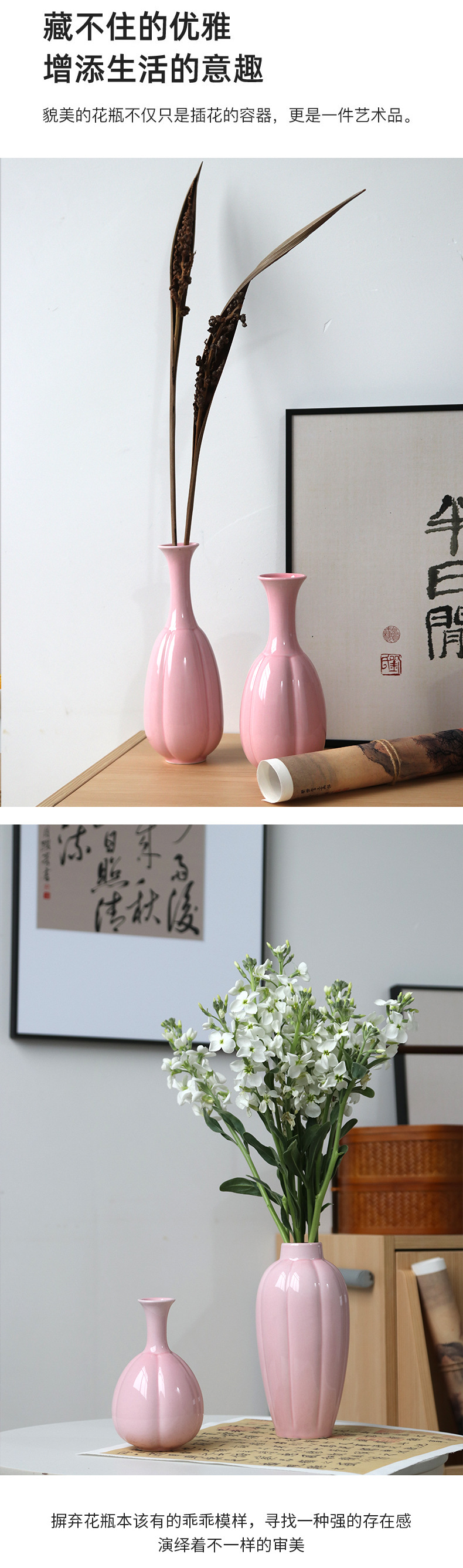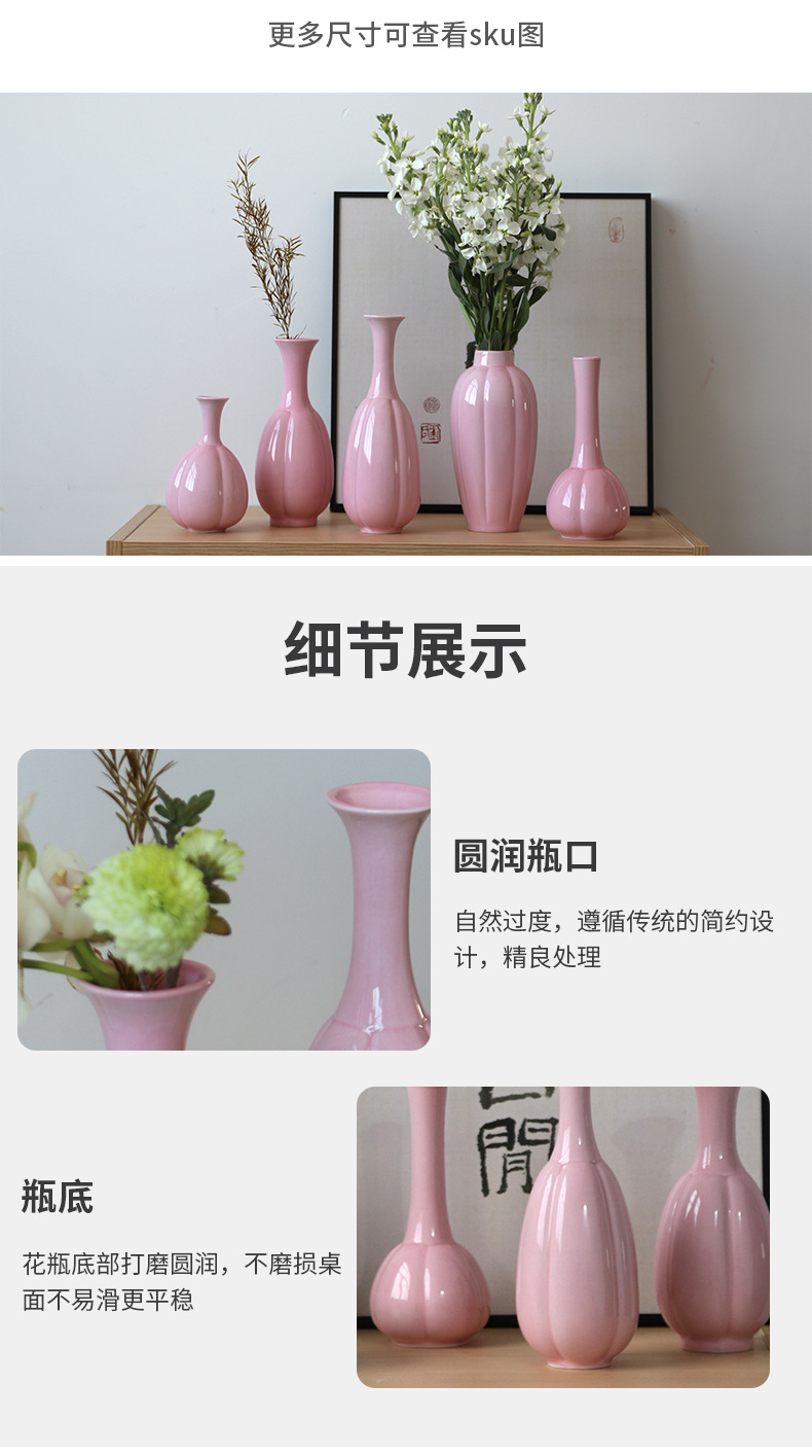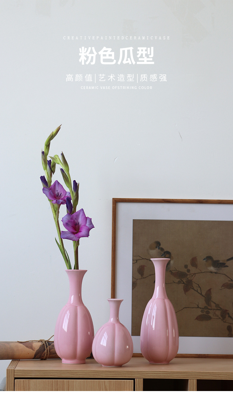 Jingdezhen 세라믹 꽃병 중국 꽃병 송의 미학 부드러운 장식 수경 꽃 핑크 멜론 가장자리 병스토어 가기