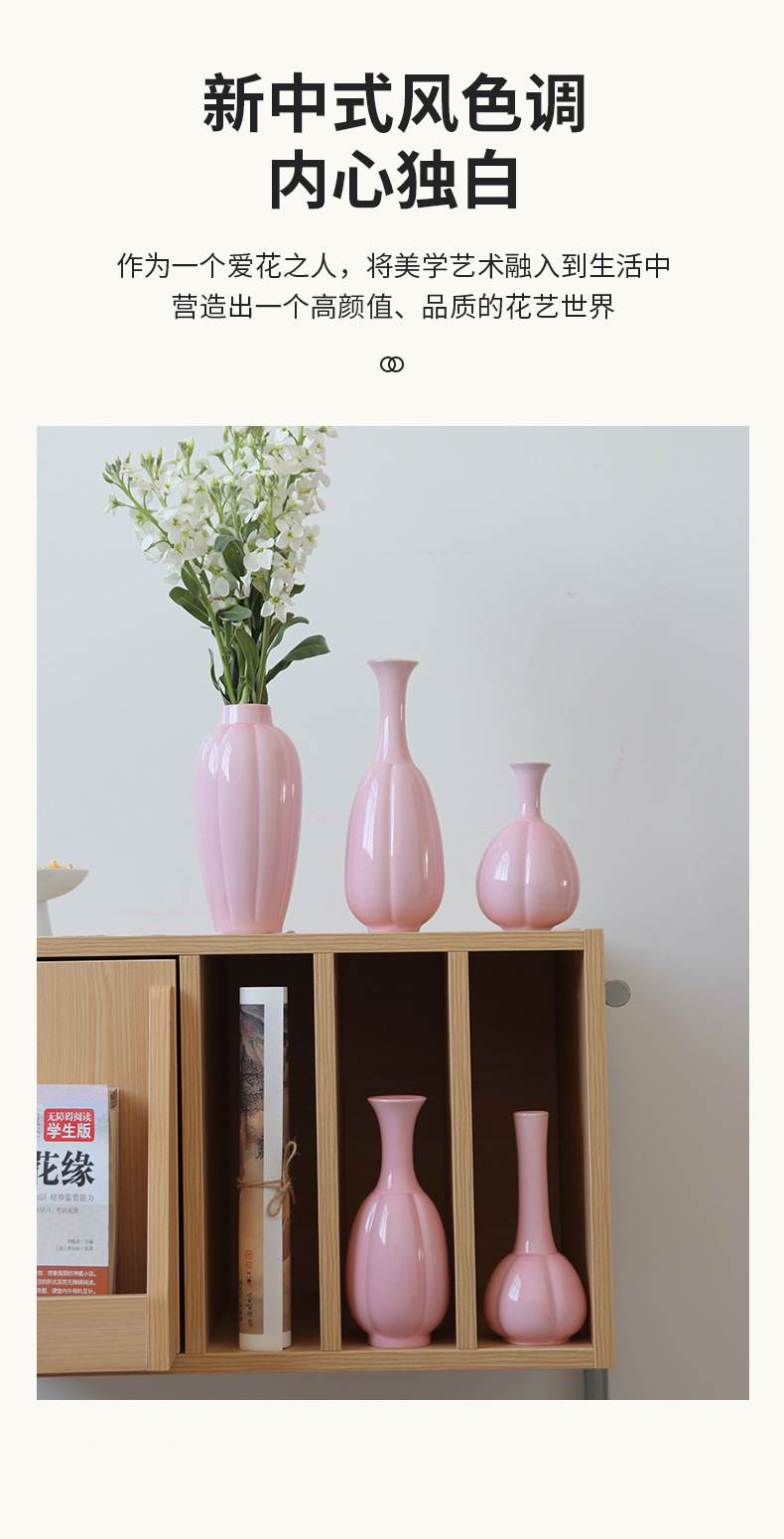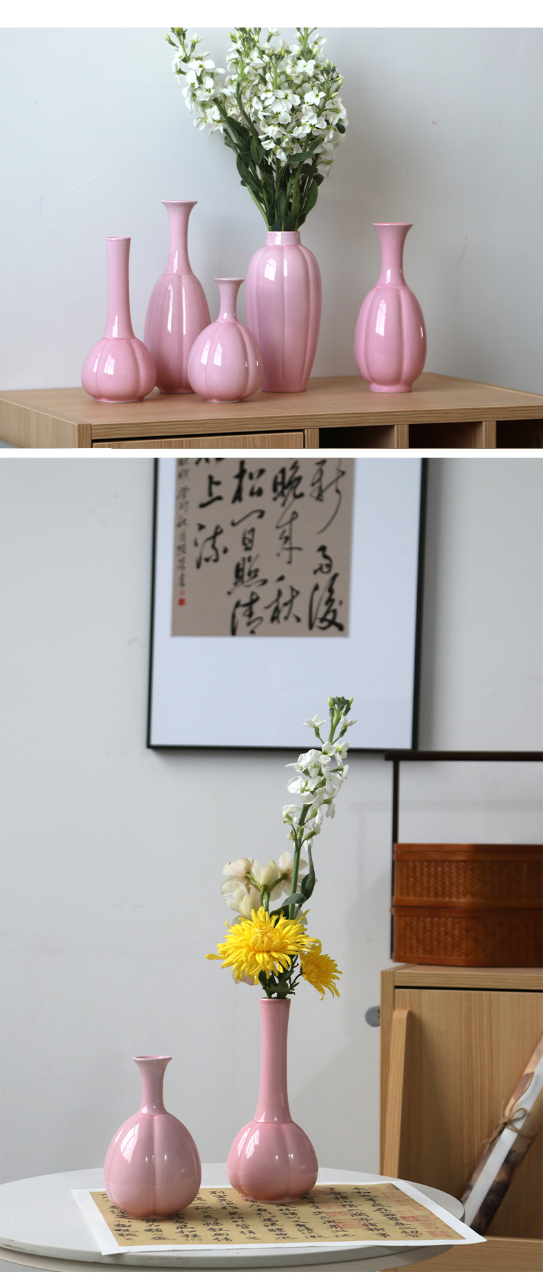 Jingdezhen 세라믹 꽃병 중국 꽃병 송의 미학 부드러운 장식 수경 꽃 핑크 멜론 가장자리 병