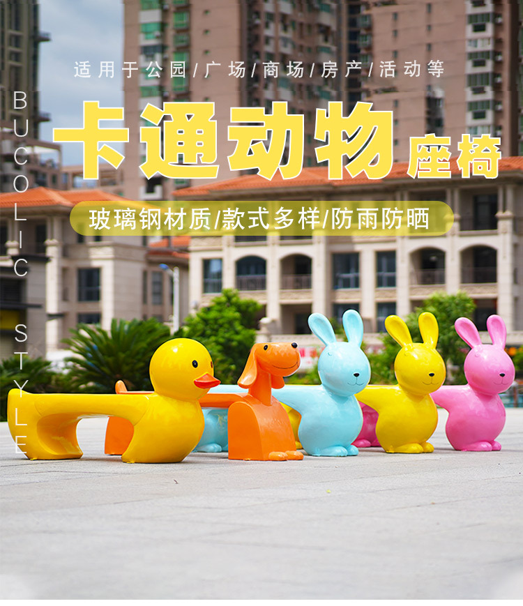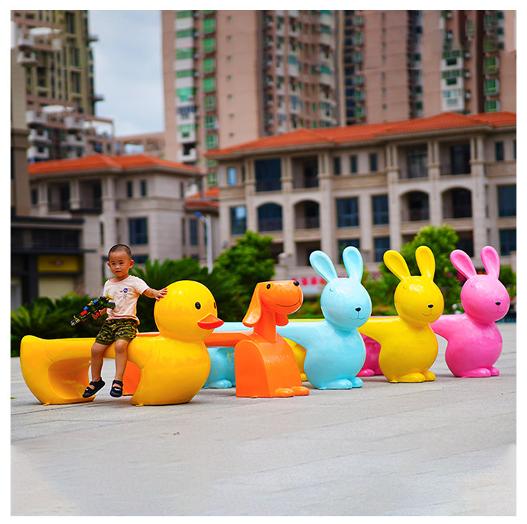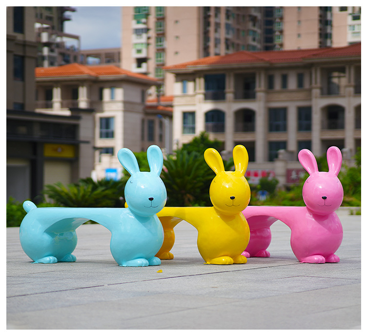 야외 만화 동물 토끼 조각 유치원 쇼핑몰 멋진 레저 좌석 앉아 의자 풍경 FRP 장식품