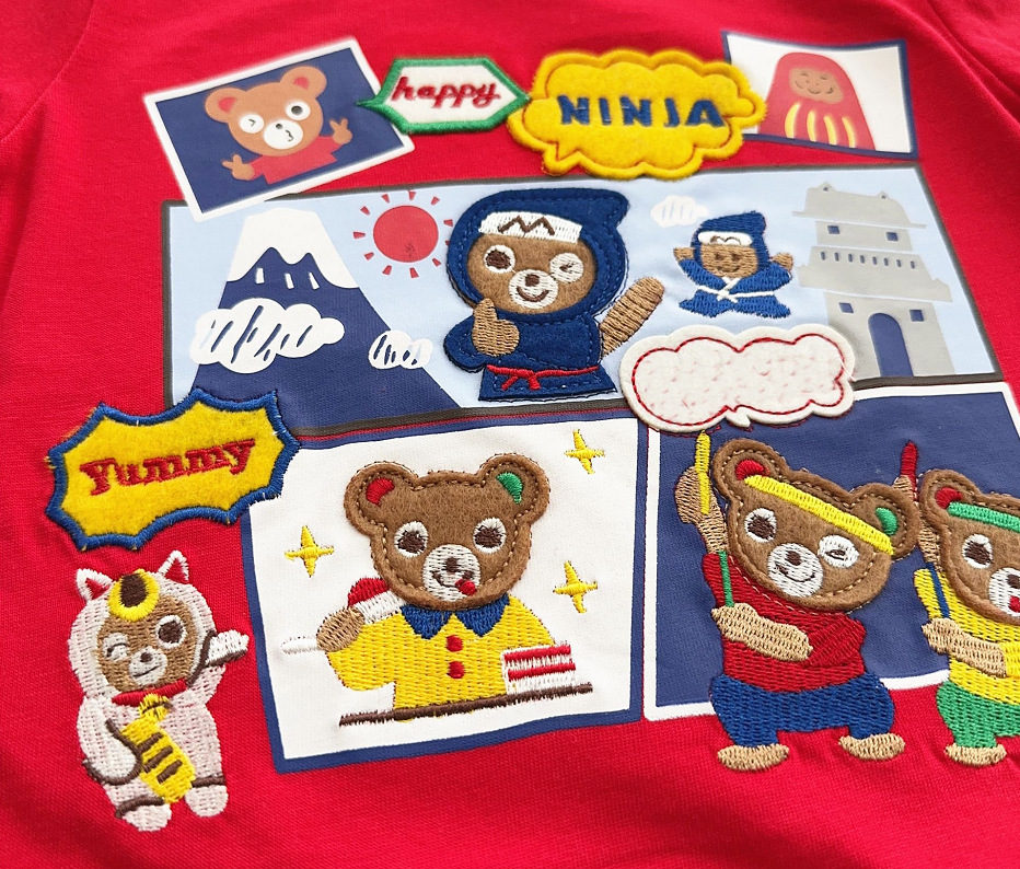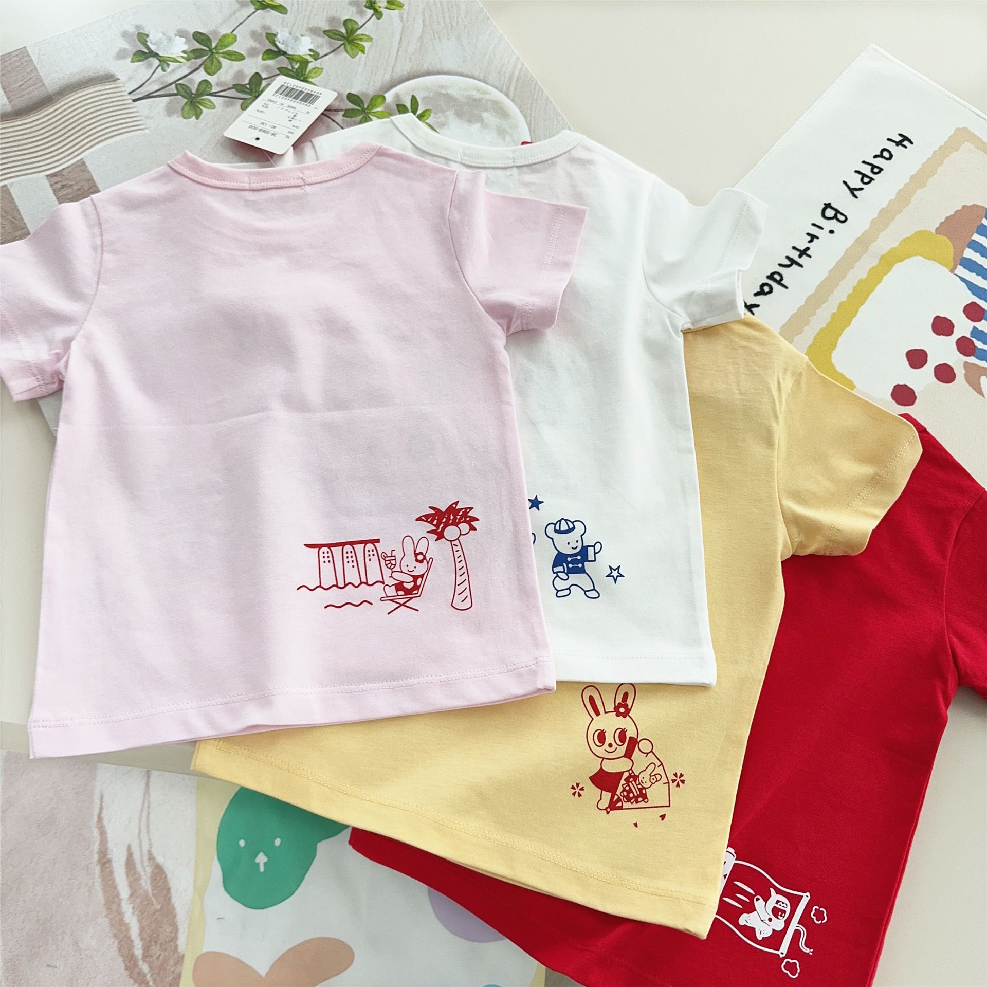 25 여름 어린이 재미 일본 새로운 만화 소년과 소녀 아기 둥근 목 짧은 소매 모험 곰 자켓 도매 7015