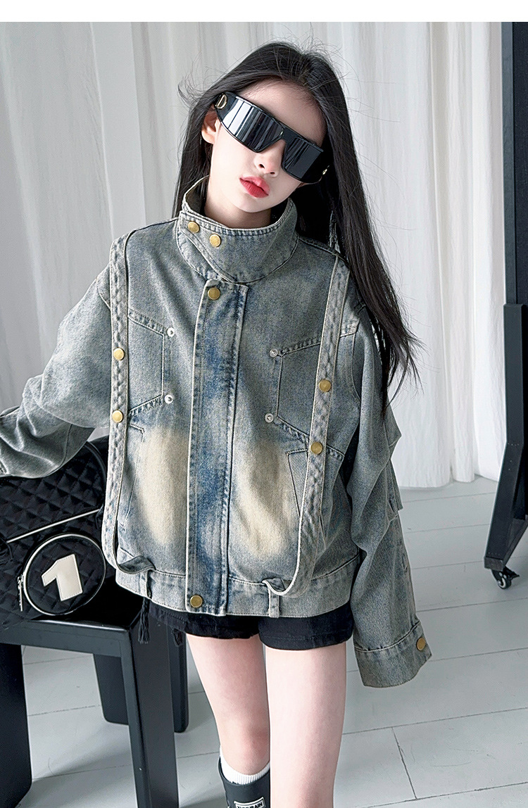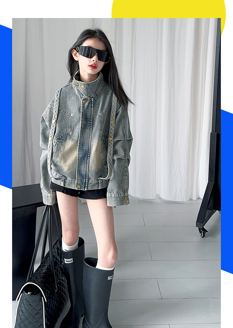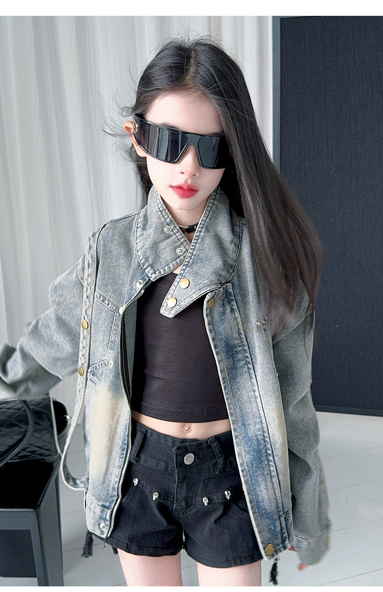 소녀 디자인 감각 틈새 느슨한 성격 올 매치 패션 스파이스 소녀 하이 엔드 센스 복고풍 봄 가을 데님 재킷