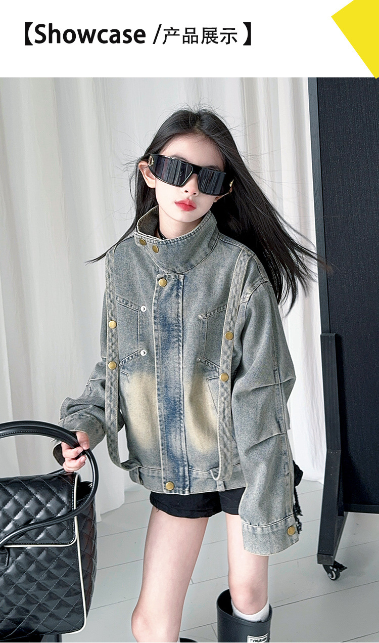 소녀 디자인 감각 틈새 느슨한 성격 올 매치 패션 스파이스 소녀 하이 엔드 센스 복고풍 봄 가을 데님 재킷스토어 가기