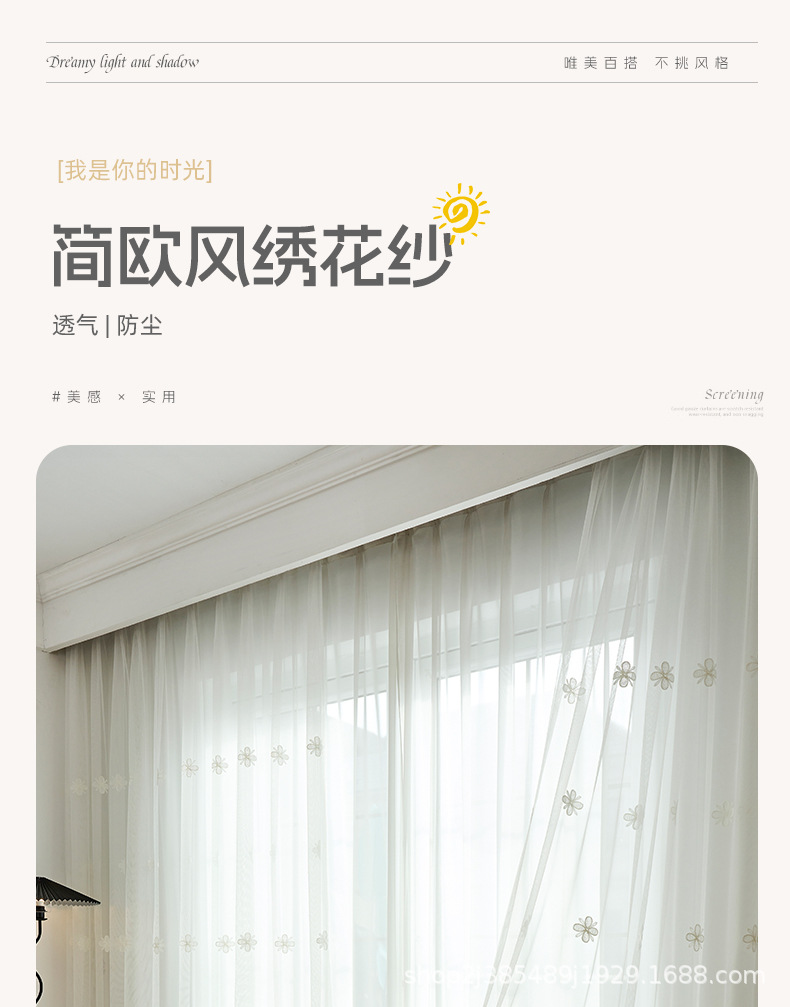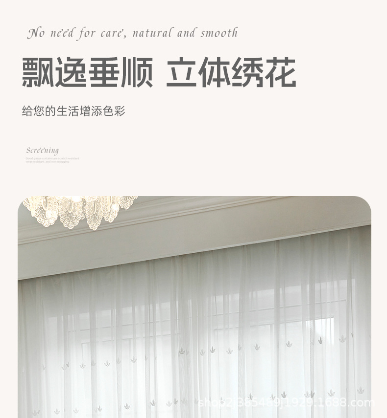 새로운 모던 심플 침실 창문 스크린 얇은 망사 통기성 장식 칸막이 커튼 전원풍 화이트 전원풍 투광