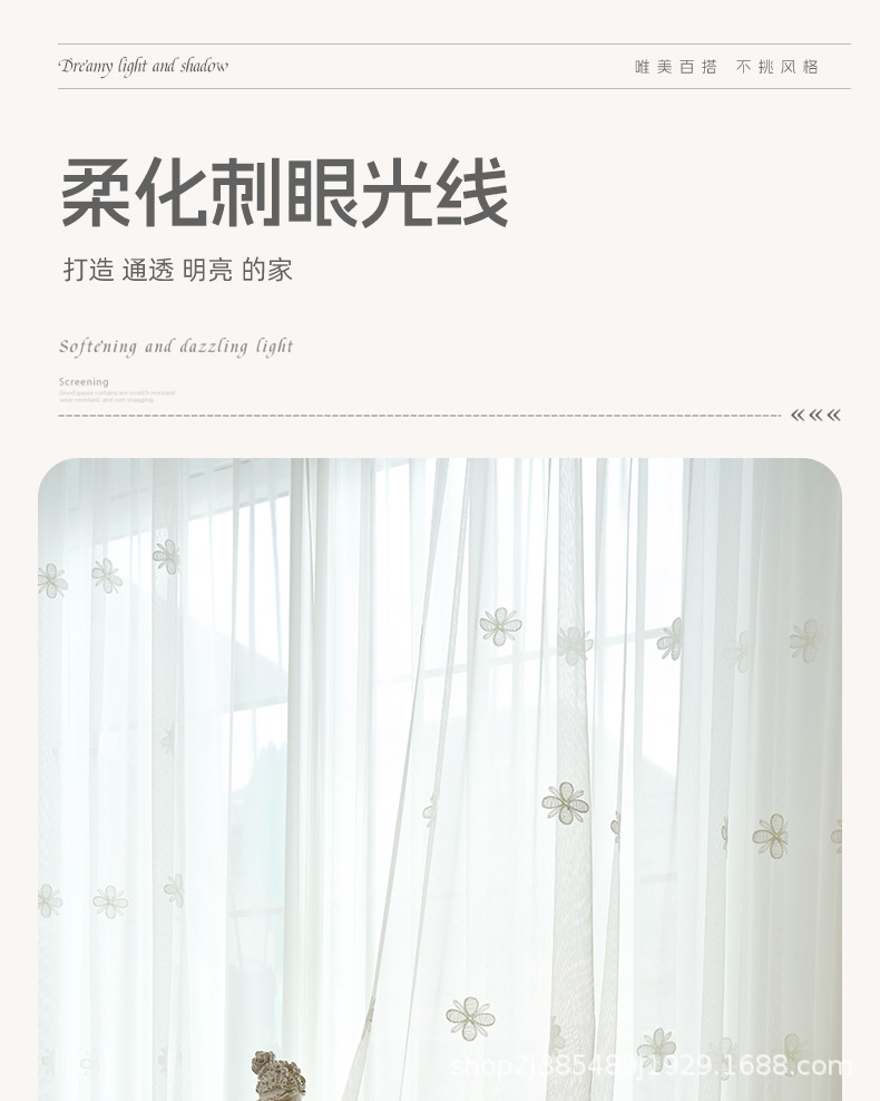 새로운 모던 심플 침실 창문 스크린 얇은 망사 통기성 장식 칸막이 커튼 전원풍 화이트 전원풍 투광스토어 가기