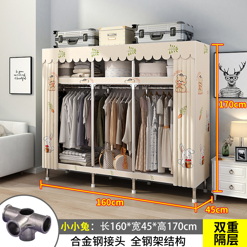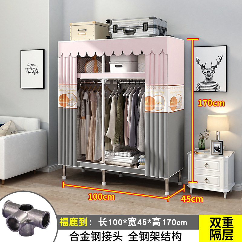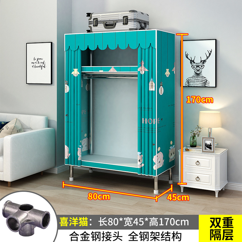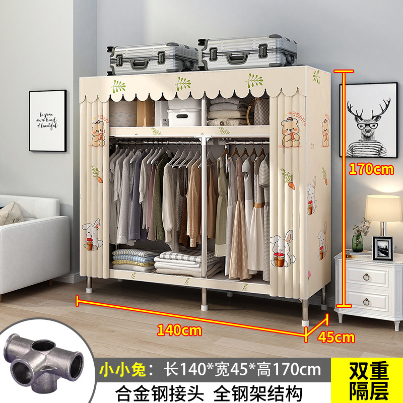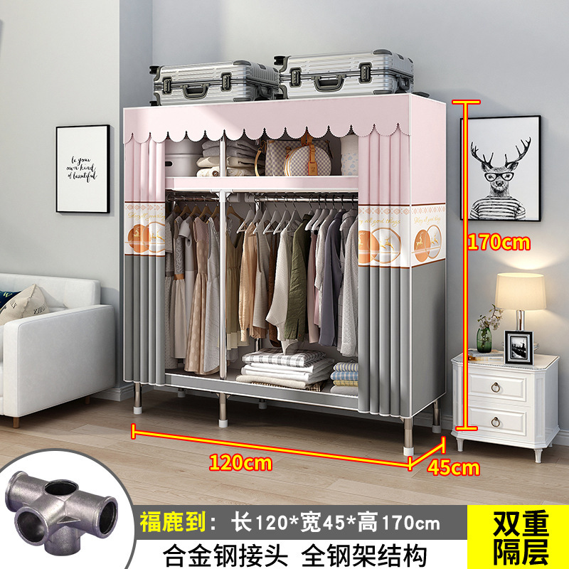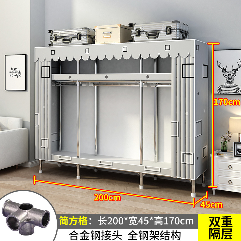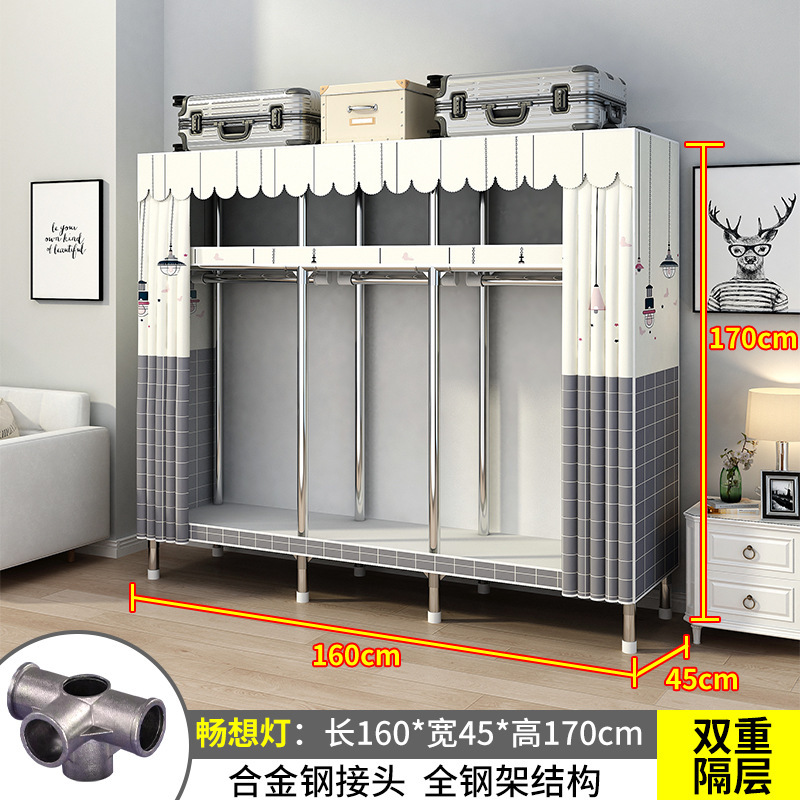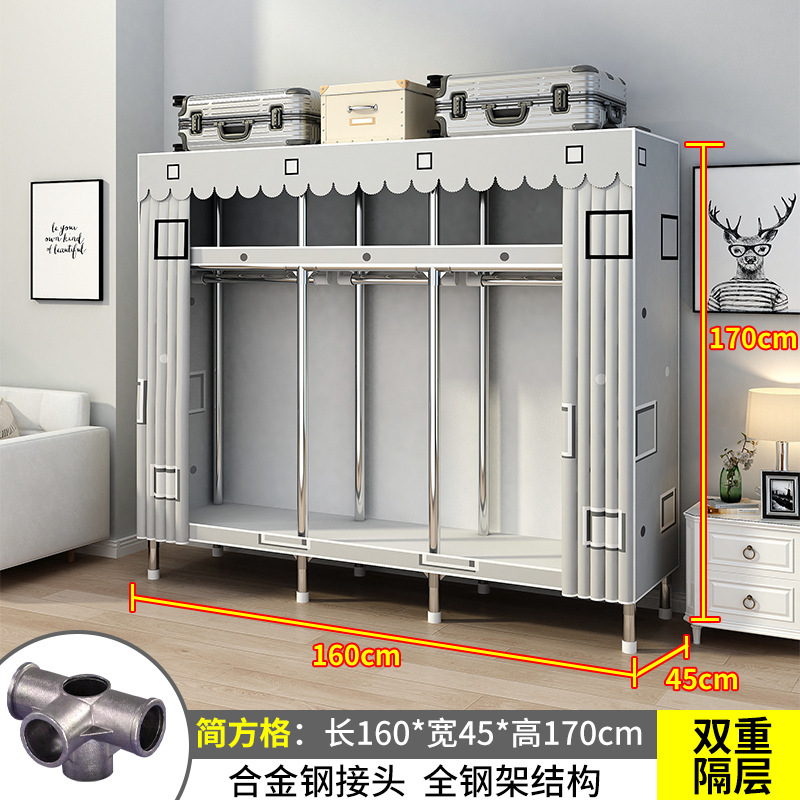 간단한 옷장 간단한 임대 홈 침실 굵은 강철 파이프 옷감 매달린 지역 옷장 임대 조립 보관스토어 가기