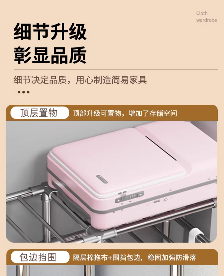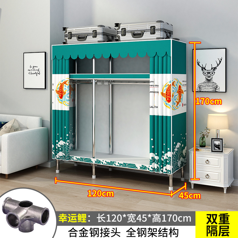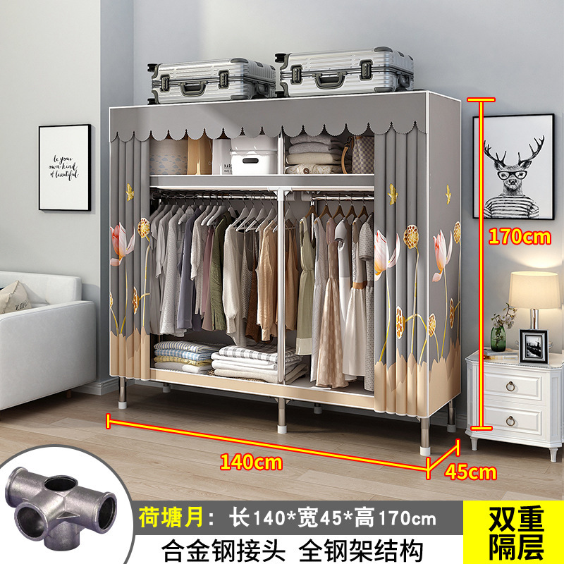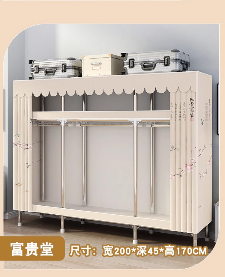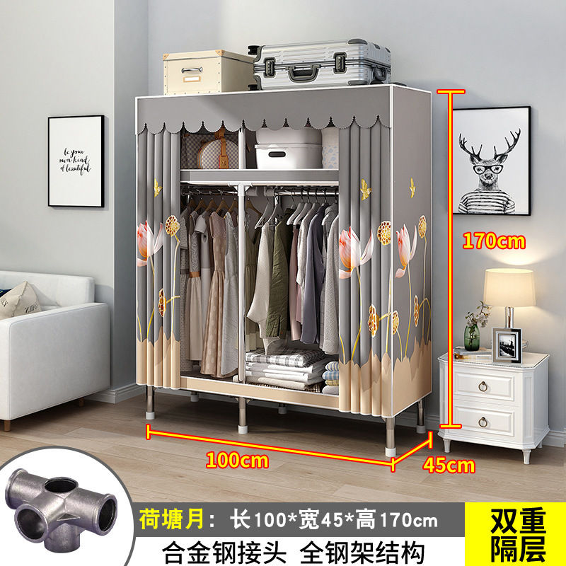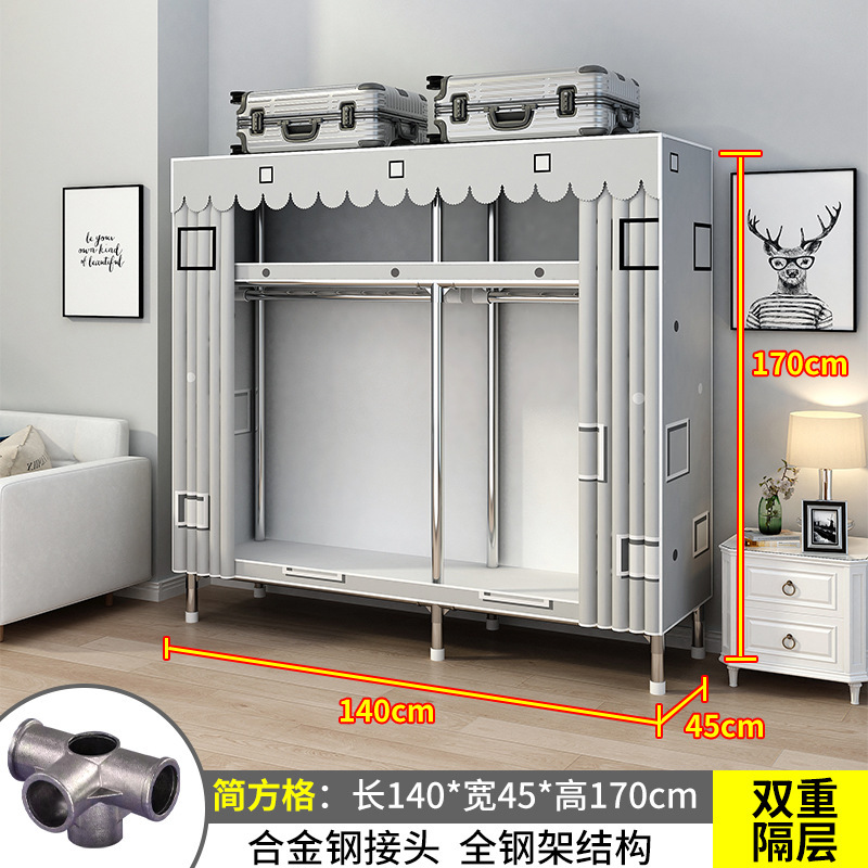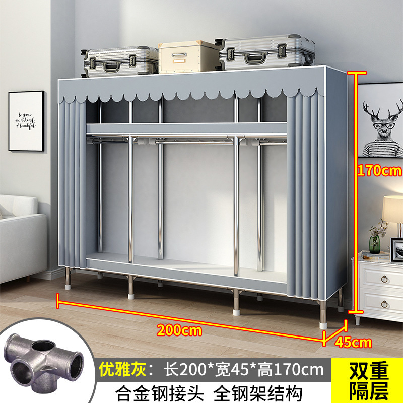 간단한 옷장 간단한 임대 홈 침실 굵은 강철 파이프 옷감 매달린 지역 옷장 임대 조립 보관스토어 가기