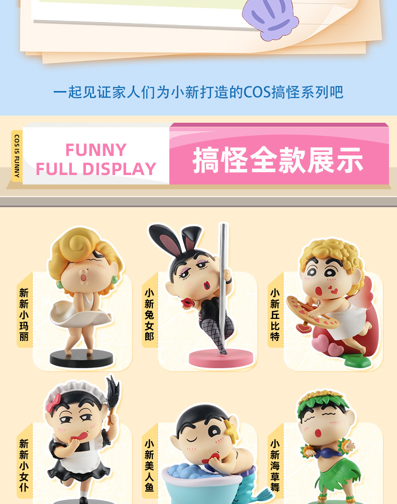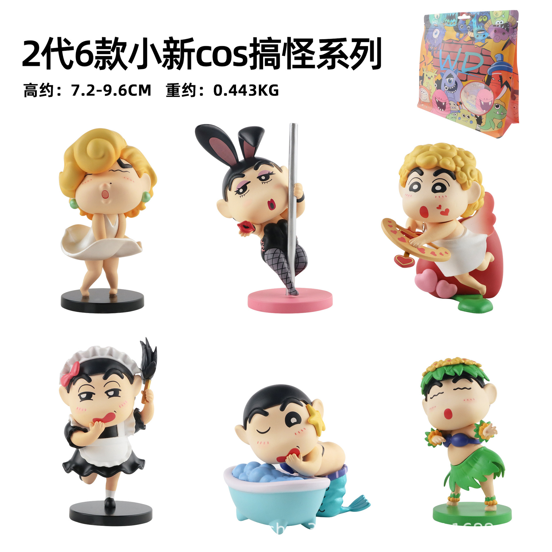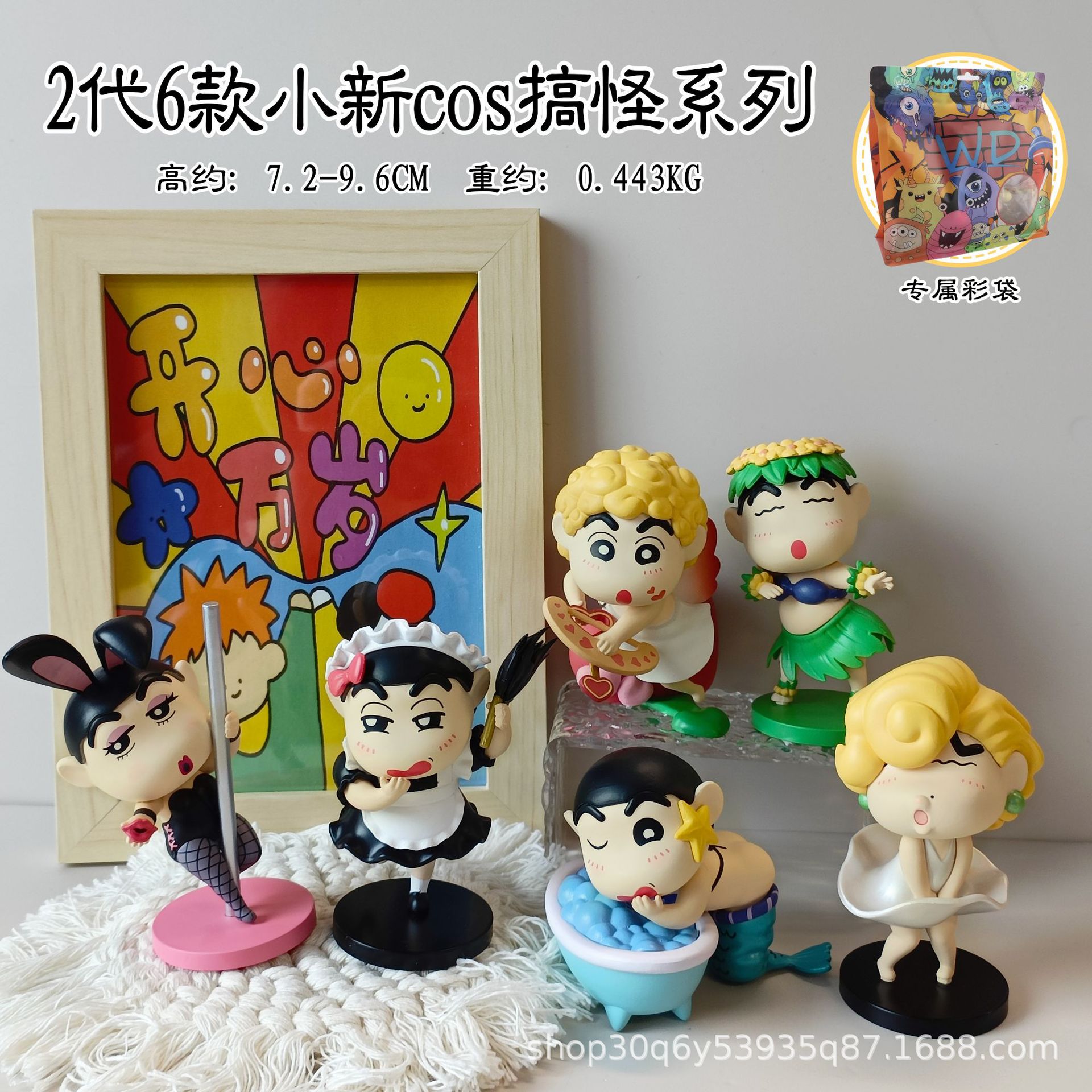 【名称】:玩得好潮新品热销2代6款小新cos搞怪系列梦露女仆美人鱼/可爱手办蛋糕装饰车载玩具/直播摆件创意潮玩装饰扭蛋机娃娃
