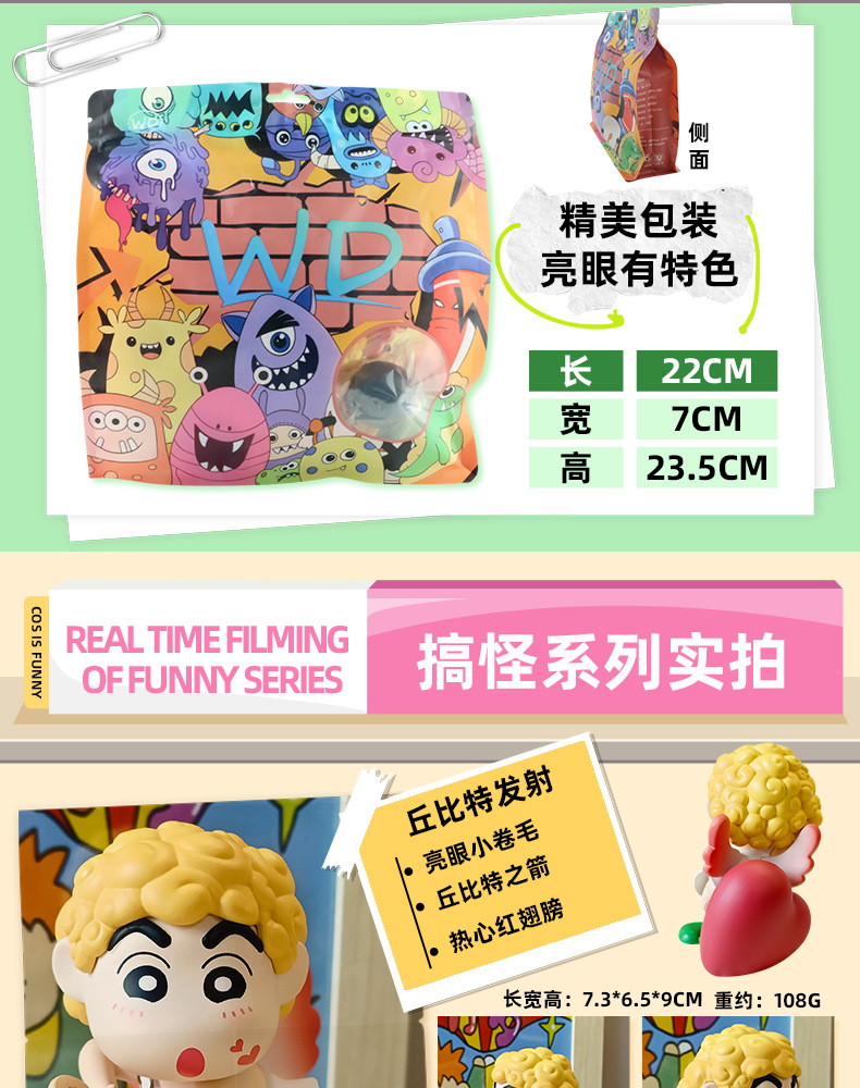 公仔由国内厂家生产,表面不能做到完美无缺,一般都会有轻微瑕疵,但整体做工也是很不错的。由于拍摄技术/环境光线/显示器色差等原因,可能导致图片与实物有略有色差,请最终请以实物的颜色为准追求完美的,亲请慎怕!