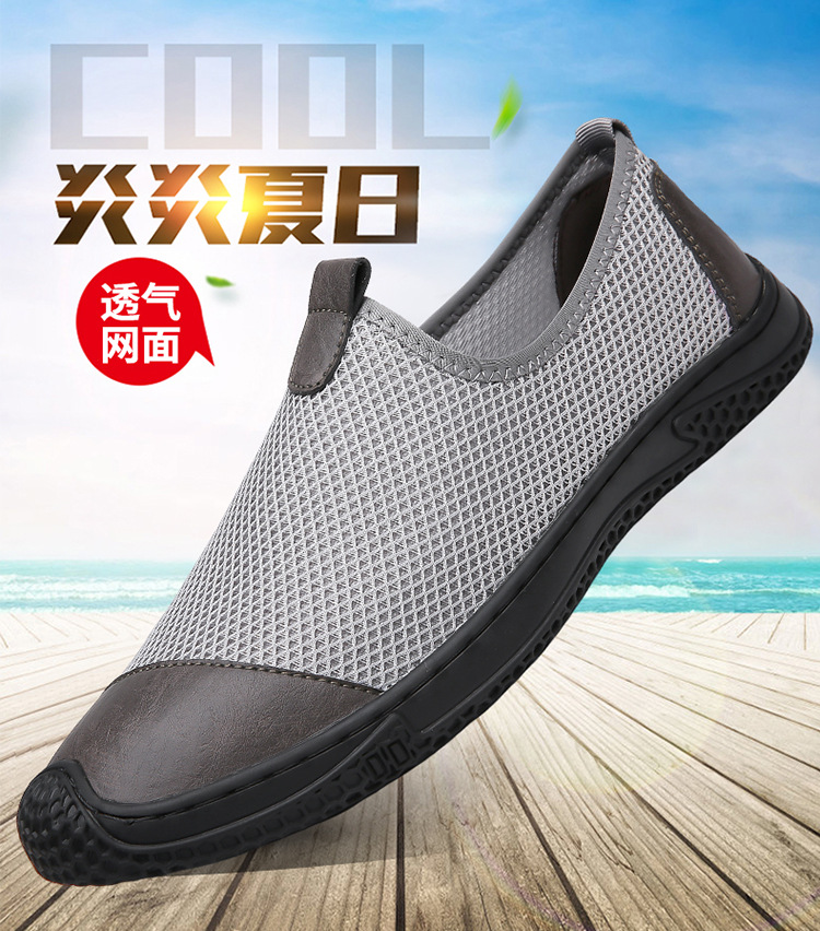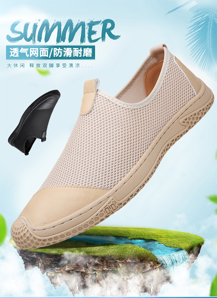 여름 메쉬 다리 캐주얼 신발 야외 메쉬 통기성 대외 무역 경량 운동화 슬립 온 워킹 슈즈