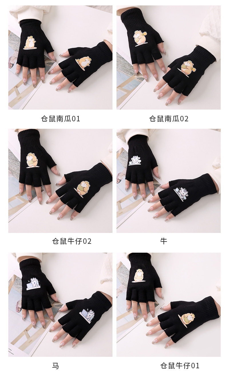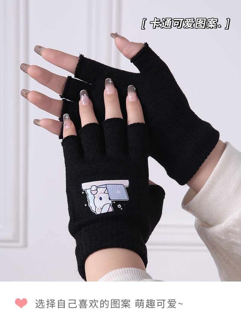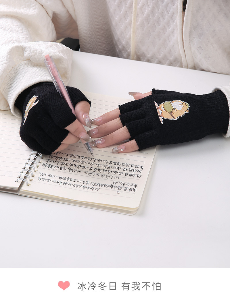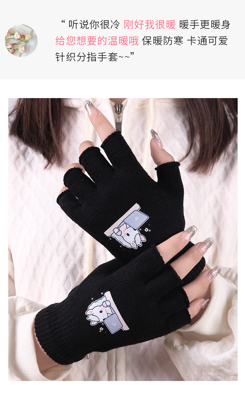 만화 인쇄 장갑 가을과 겨울 봉제 따뜻한 반 손가락 장갑 사무실 학생 누락 된 손가락 니트 따뜻한 장갑스토어 가기