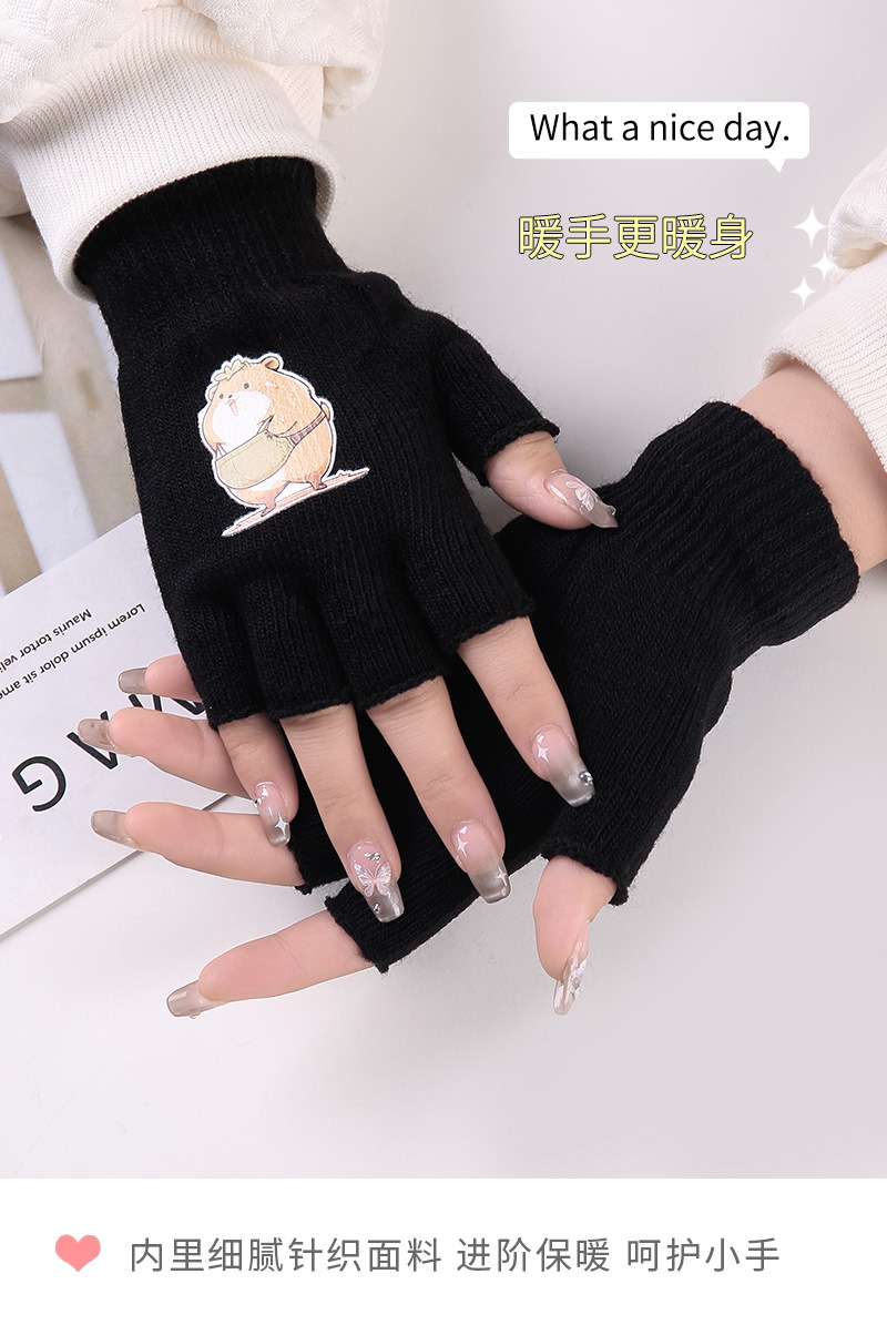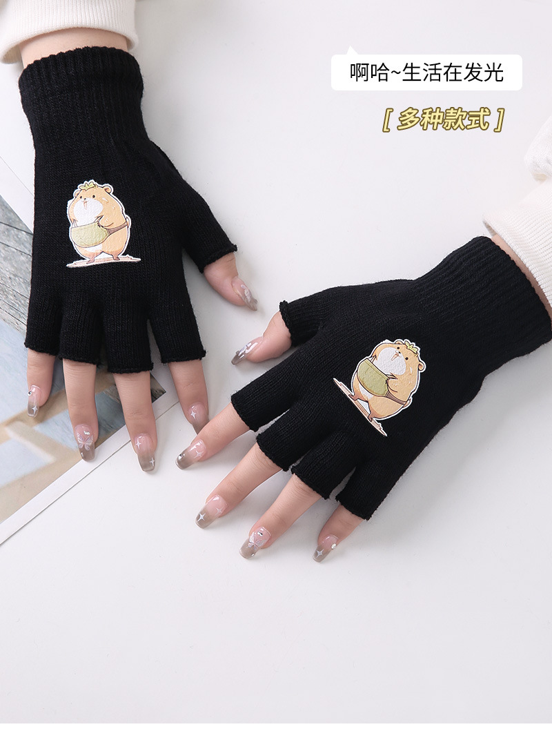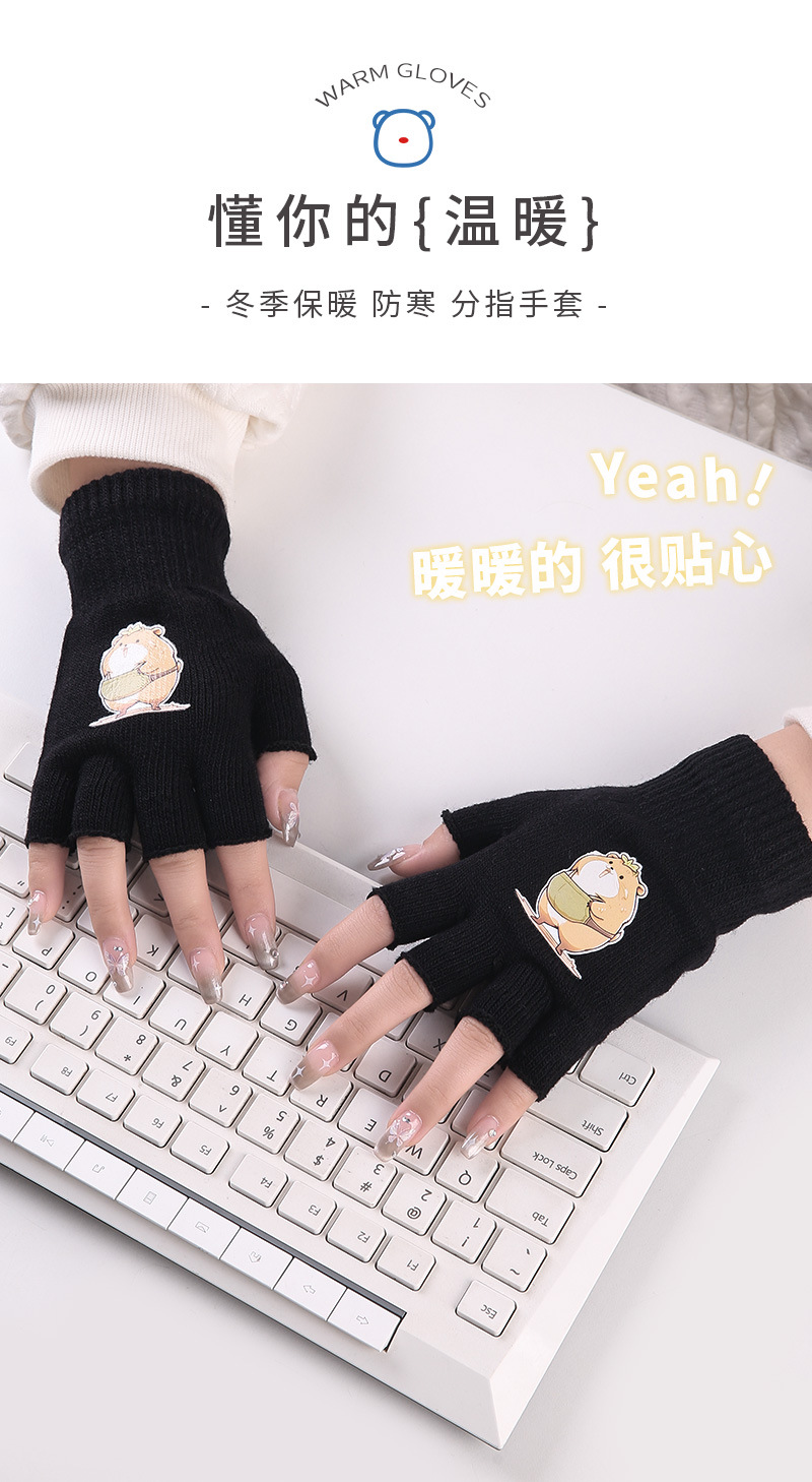 만화 인쇄 장갑 가을과 겨울 봉제 따뜻한 반 손가락 장갑 사무실 학생 누락 된 손가락 니트 따뜻한 장갑스토어 가기