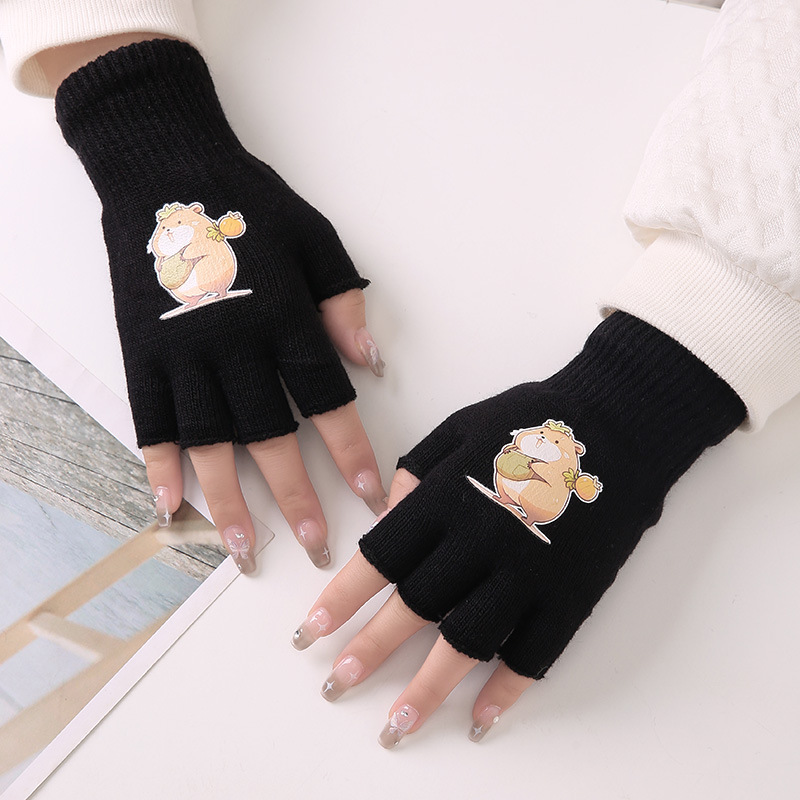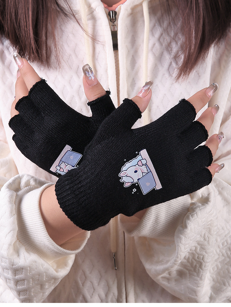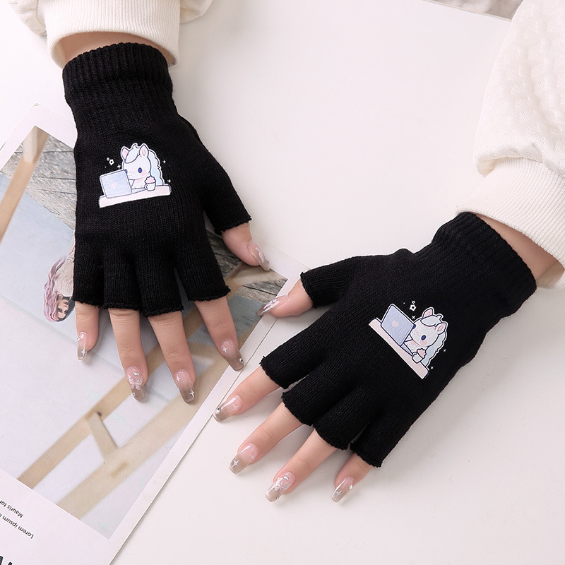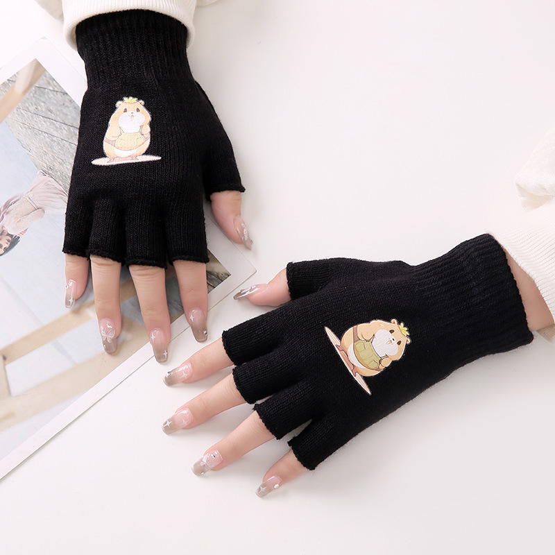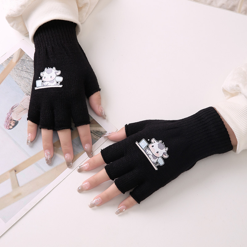 만화 인쇄 장갑 가을과 겨울 봉제 따뜻한 반 손가락 장갑 사무실 학생 누락 된 손가락 니트 따뜻한 장갑