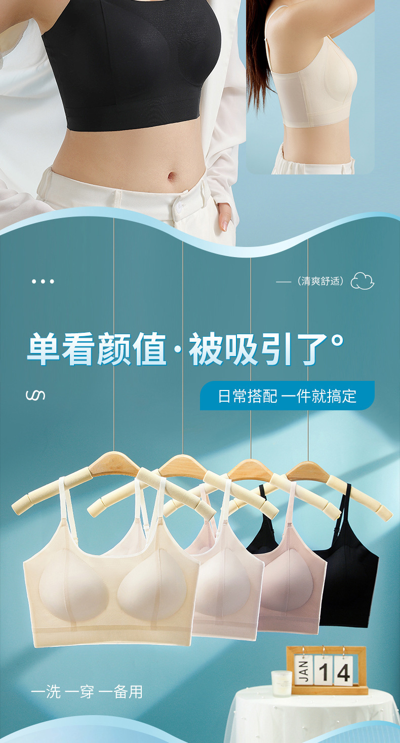 여름 아이스 실크 추적없는 속옷 여자 고정 컵 풀업 조립 방지 처짐 비 스틸 링 고정 컵 브라스토어 가기