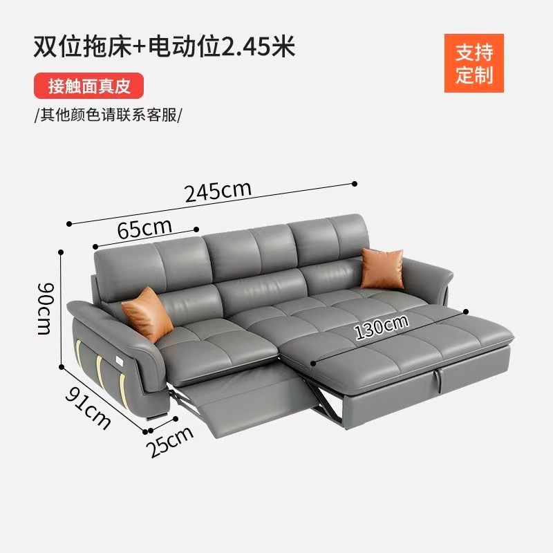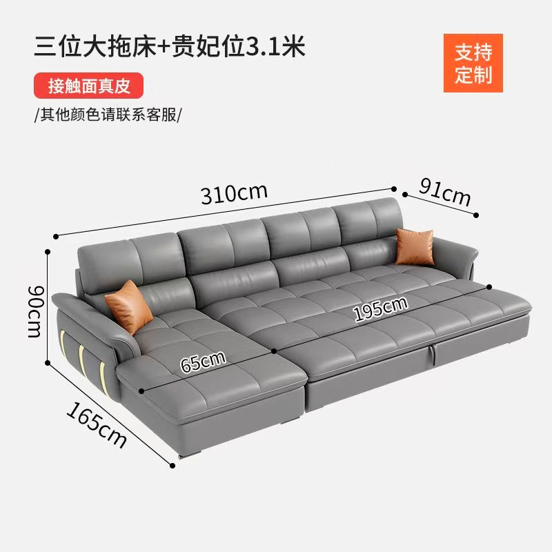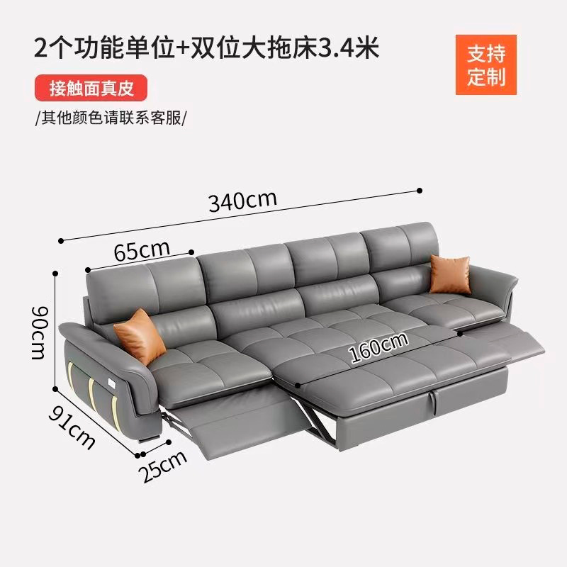 가죽 소파 작은 아파트 이중 사용 현대 간단한 다기능 전기 거실 가죽 조합 빛 럭셔리 소파 침대스토어 가기