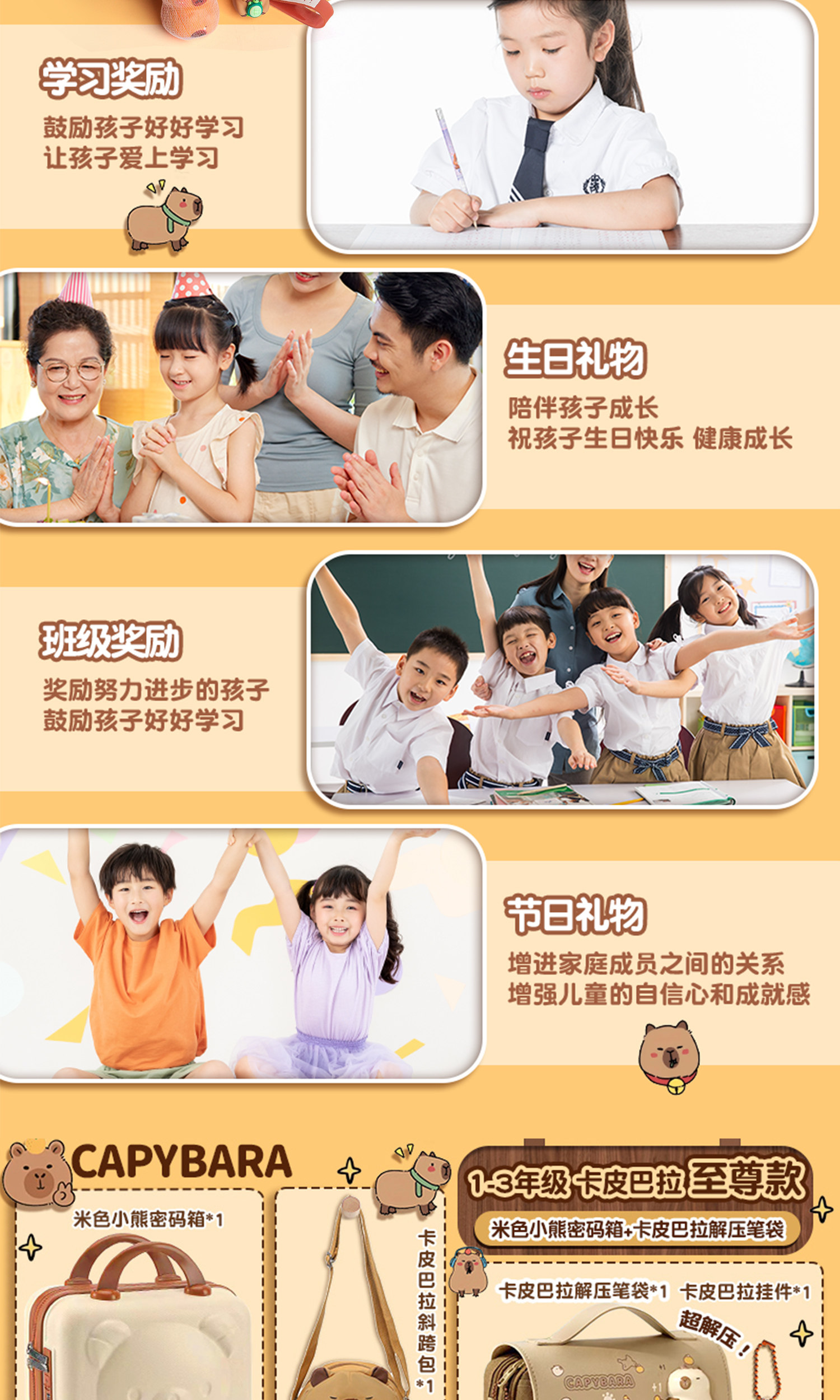 • (3~6학년) 카피발라 럭셔리 모델 [베이지곰 비밀번호 상자 + 카피발라 감압 필통]