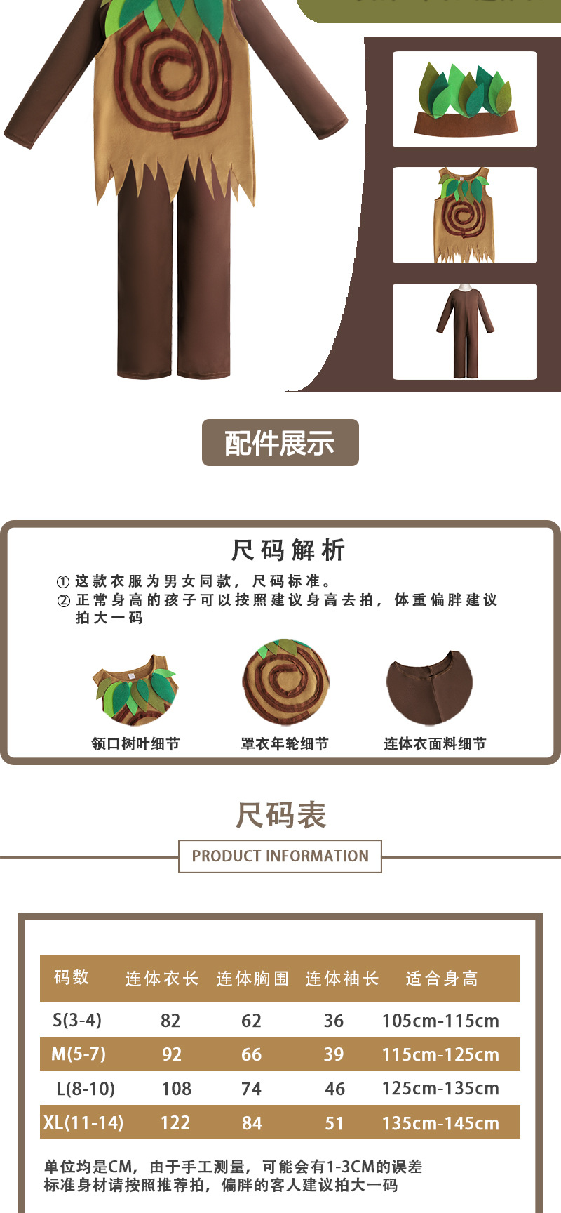 할로윈, 설날, 나무정령의 날, 드라마 파티 의상, 어린이 대나무 의상, 코스프레 무대 공연 의상