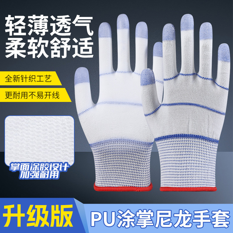 노동 보호 장갑 도매 먼지가없는 전자 공장 정전기 방지 특수 장갑 얇은 통기성 PU 손가락 코팅 손바닥 장갑