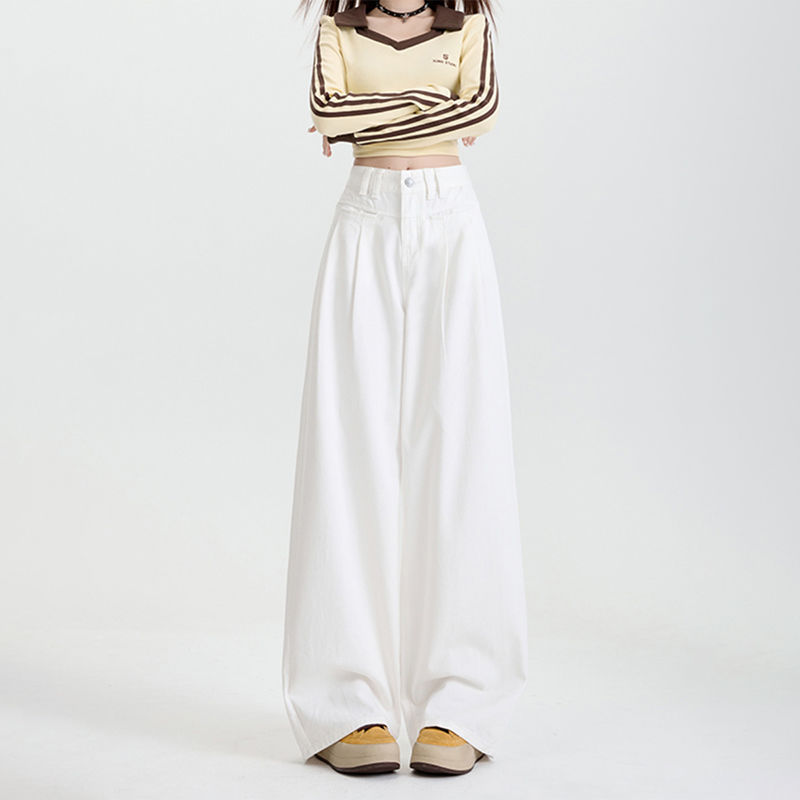 흰색 다목적 슬림 룩 청바지 편안한 서양식 여성 2025 한국 스타일 높은 허리 느슨한 넓은 다리 바지 보여주는 그림스토어 가기