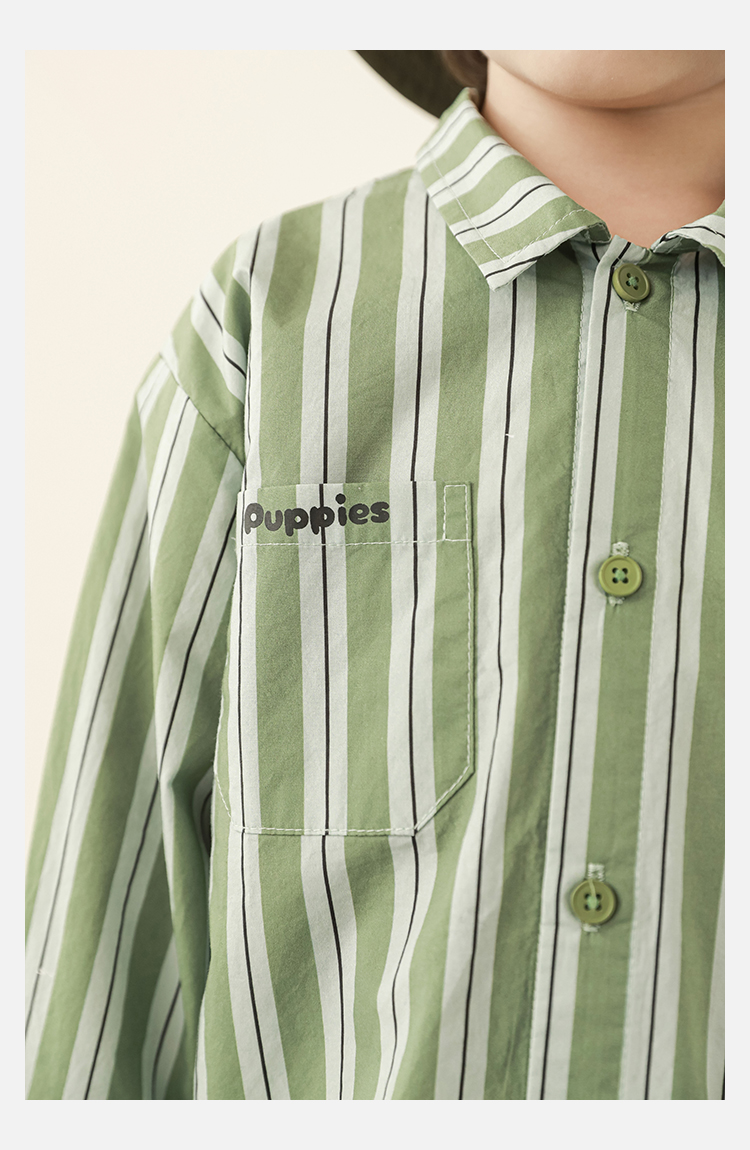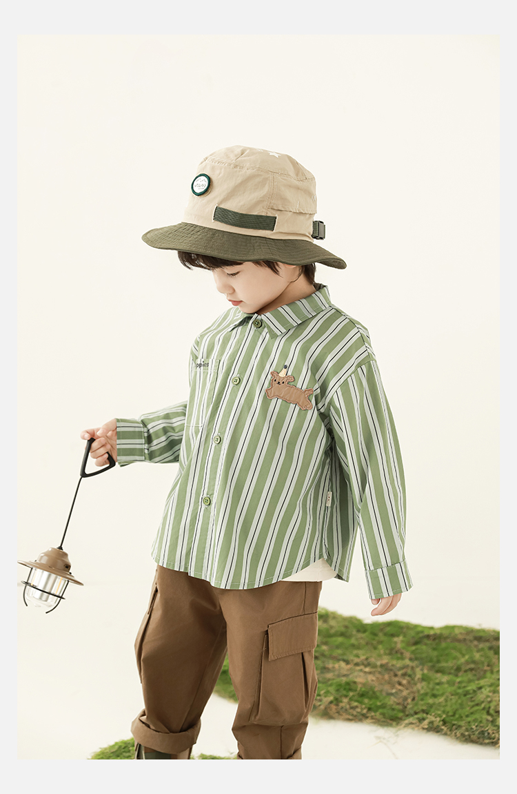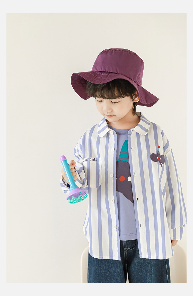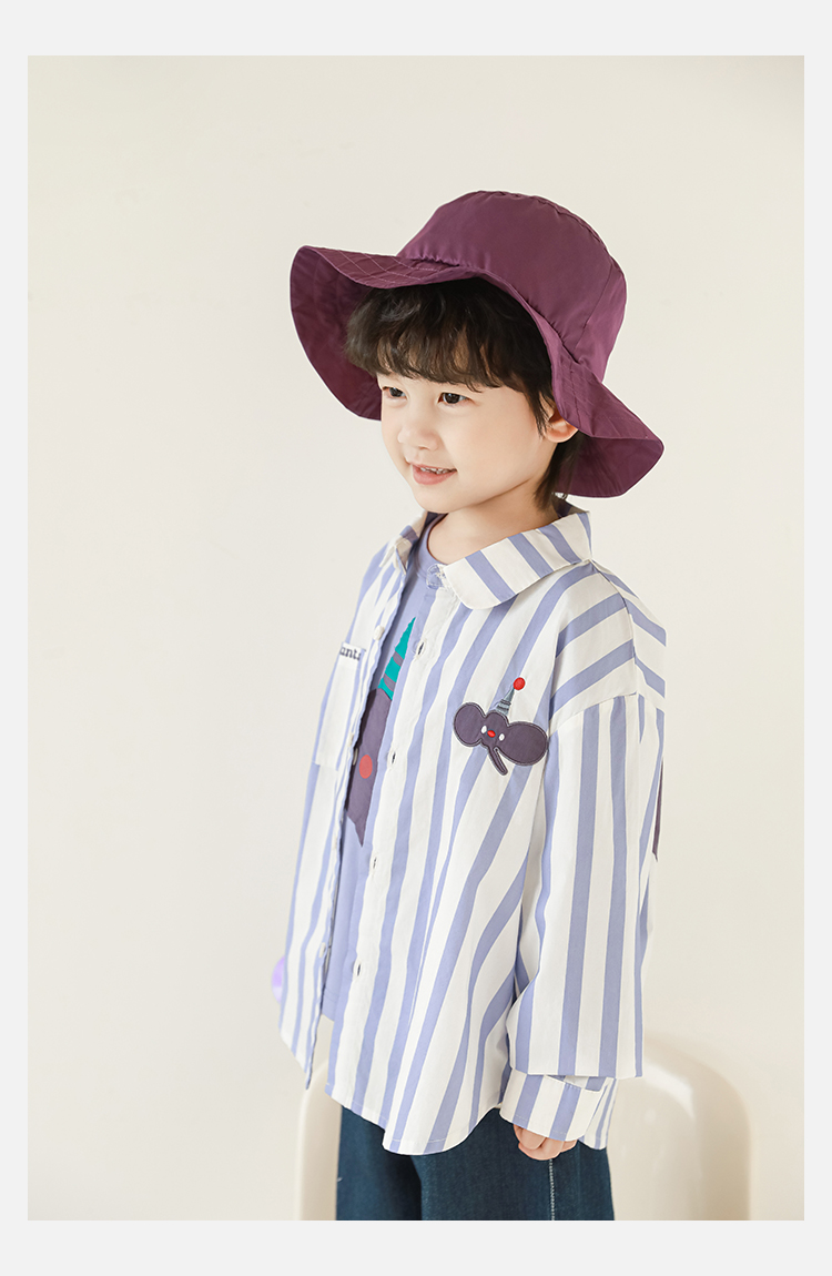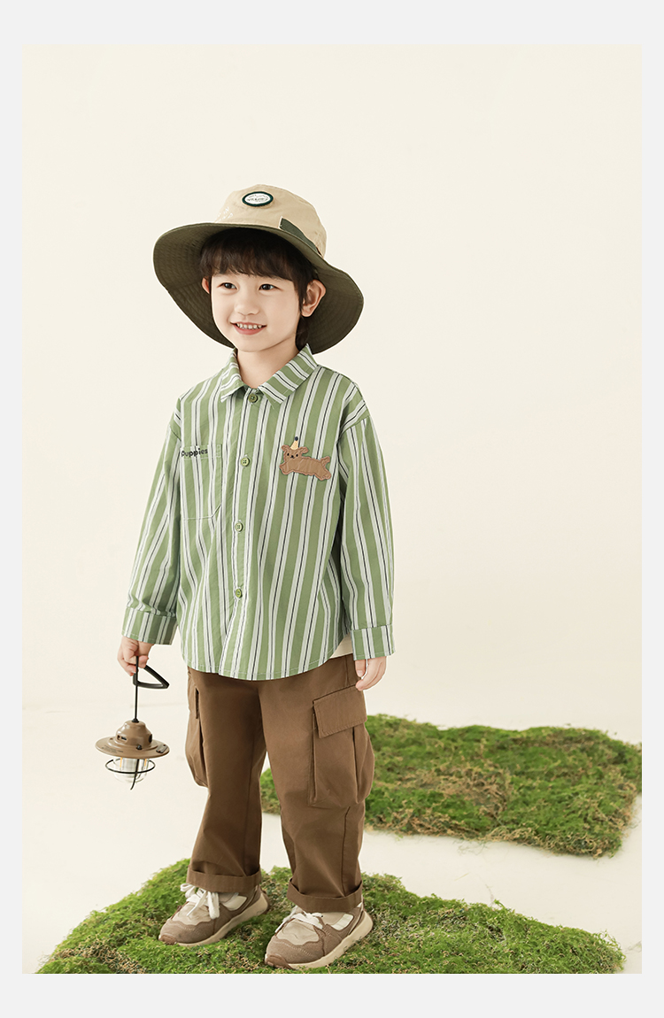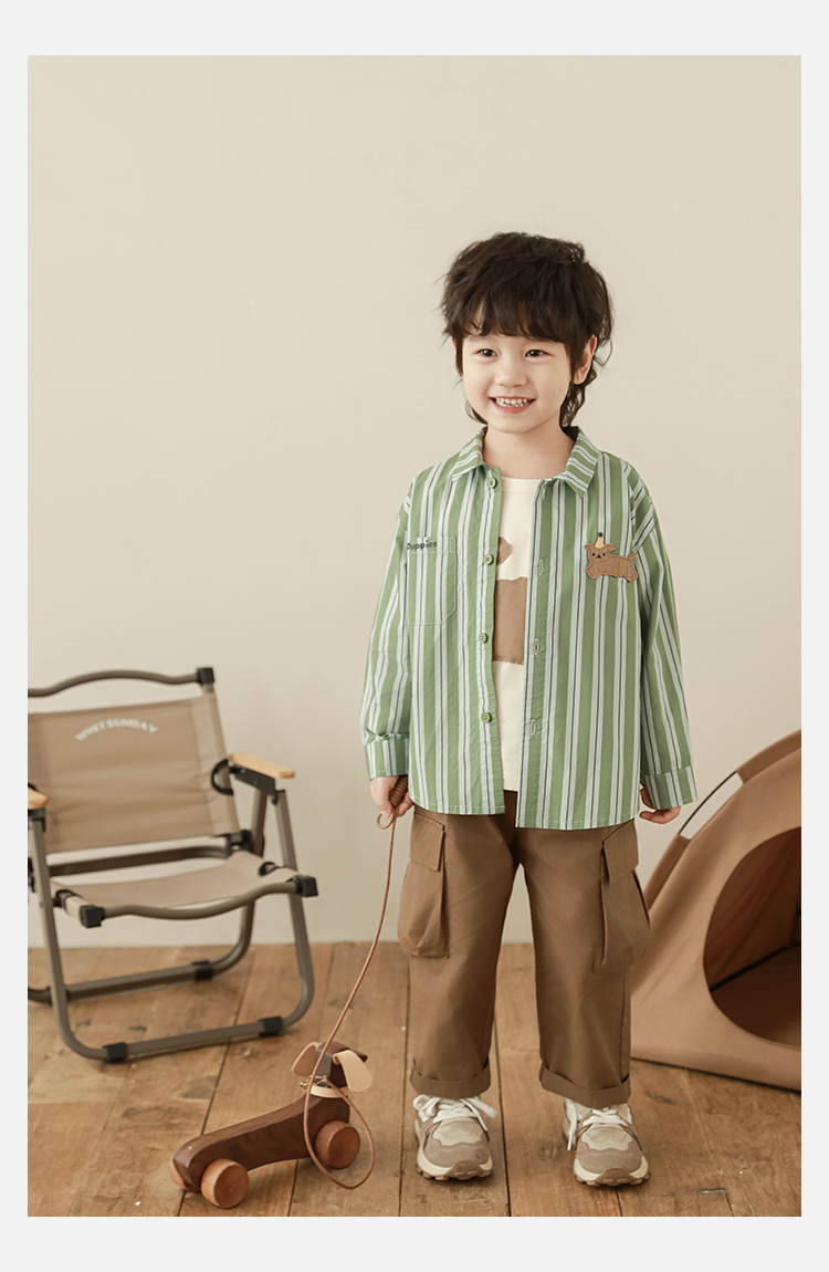 Wuri Boys의 2025 년 봄 새 긴 소매 옷깃 줄무늬 셔츠 캐주얼 느슨한 올매치 어린이 셔츠스토어 가기