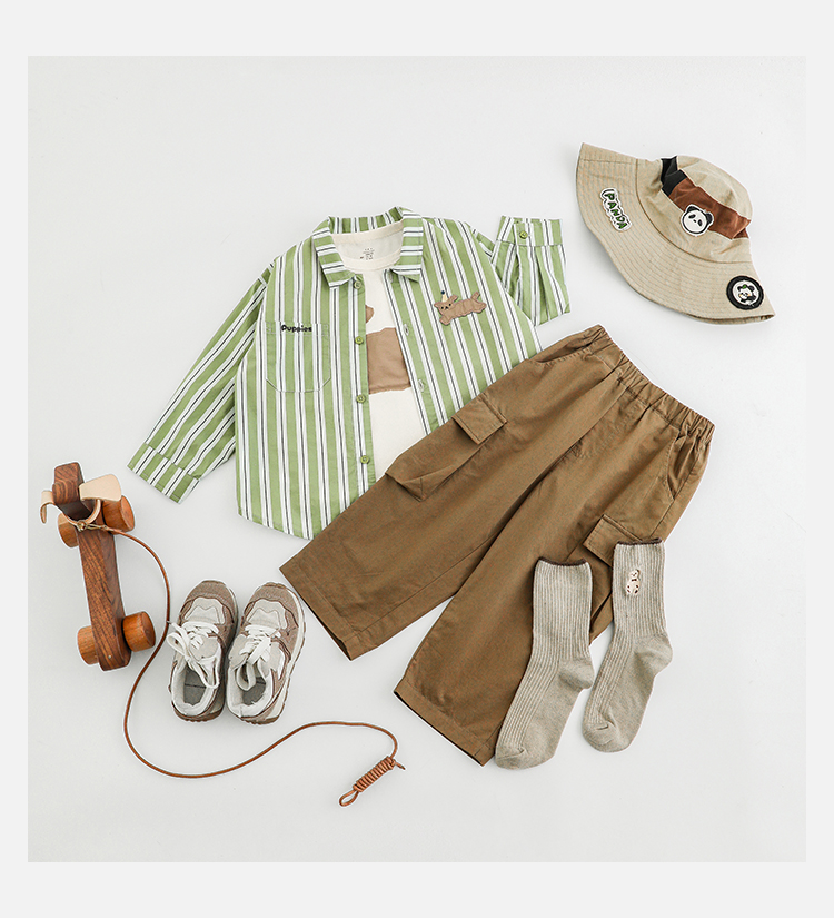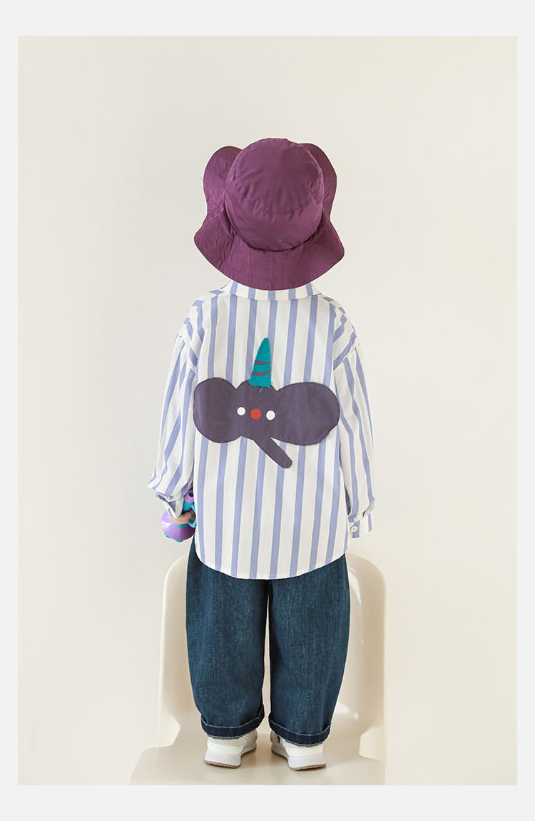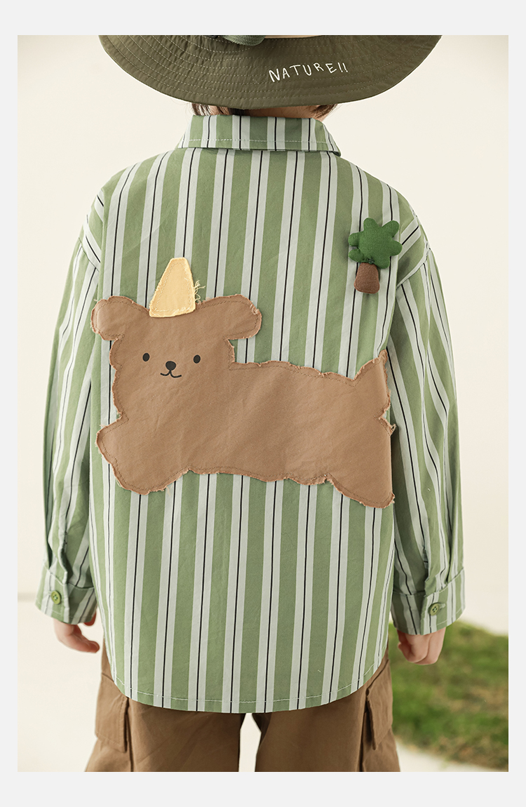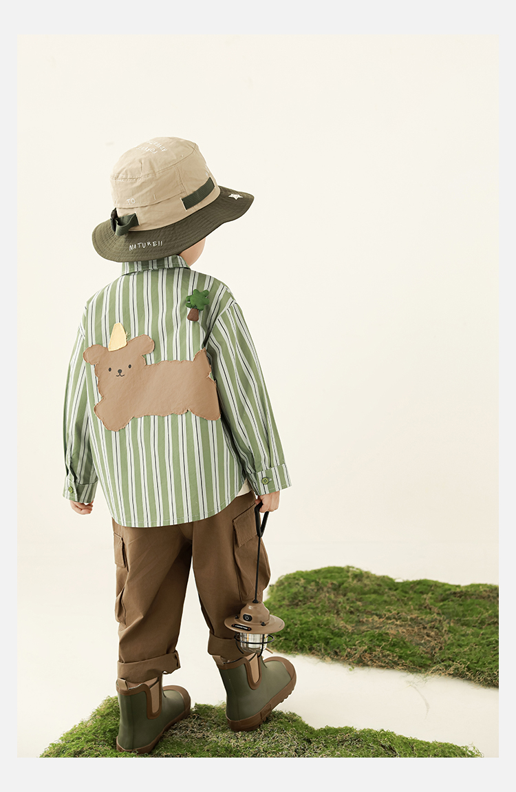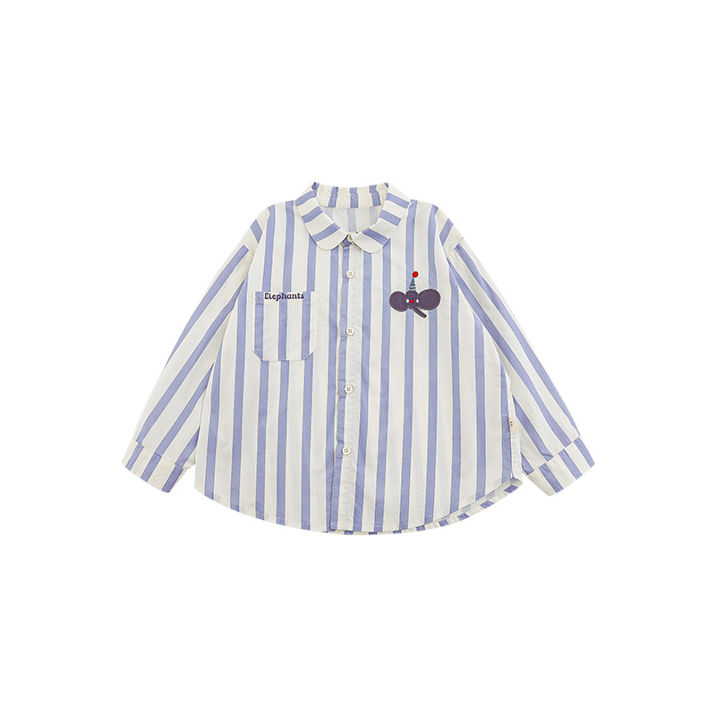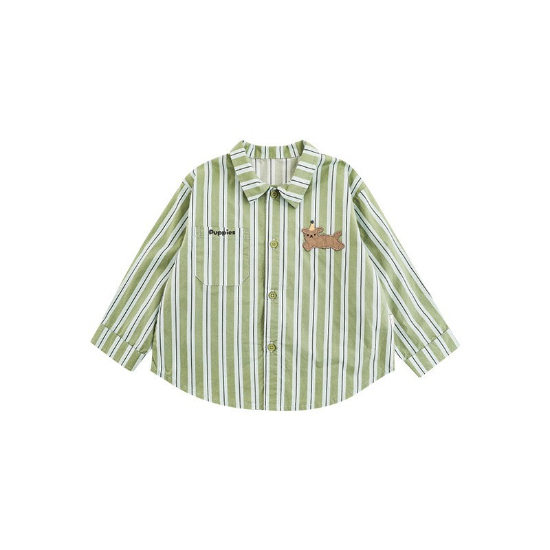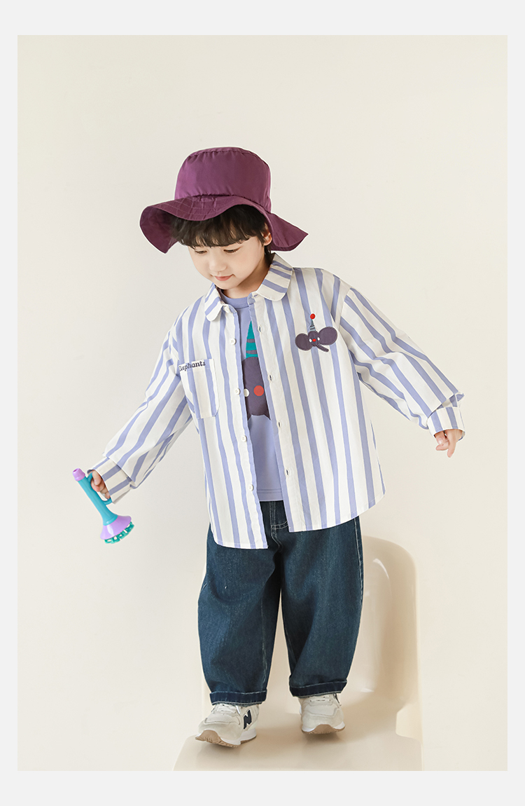 Wuri Boys의 2025 년 봄 새 긴 소매 옷깃 줄무늬 셔츠 캐주얼 느슨한 올매치 어린이 셔츠스토어 가기