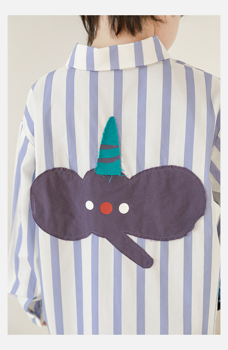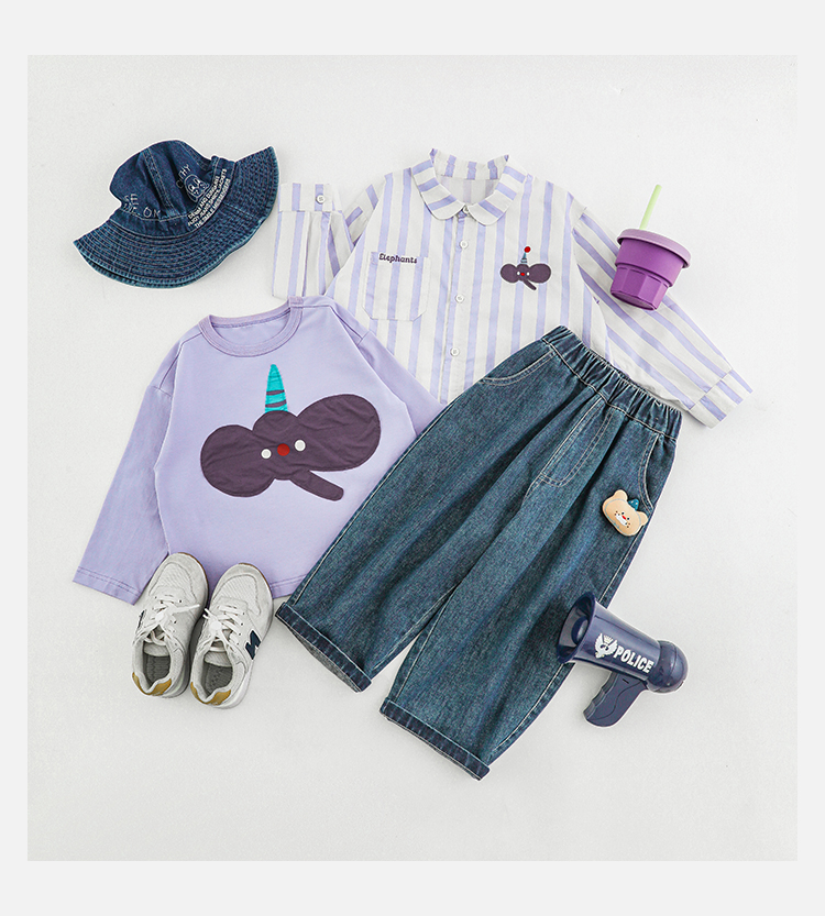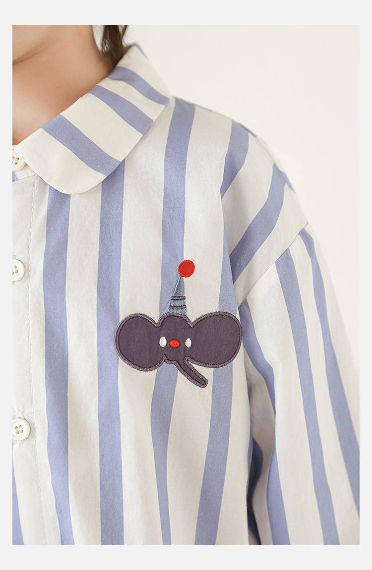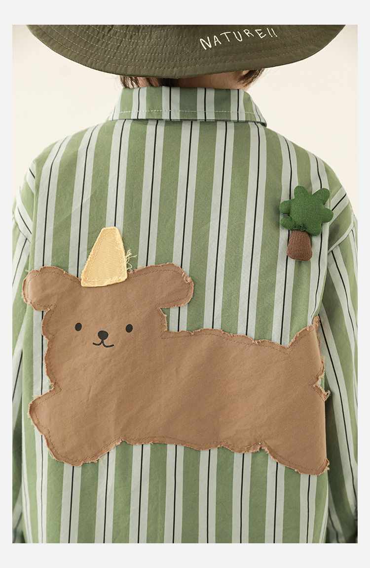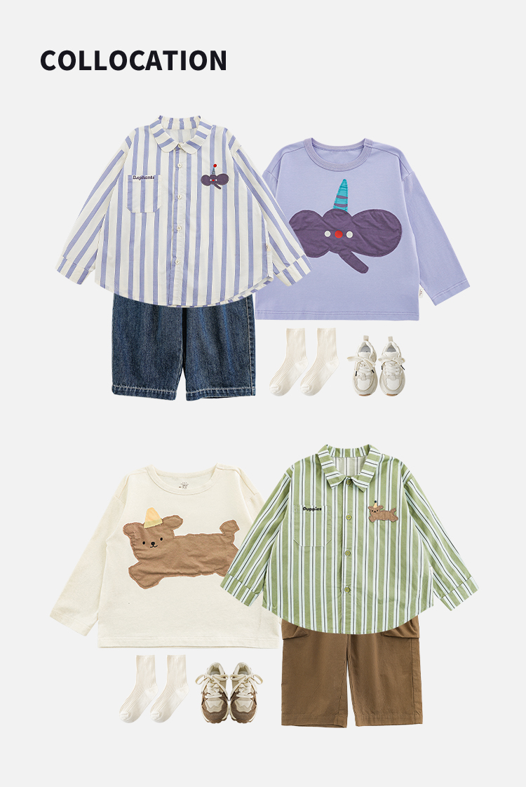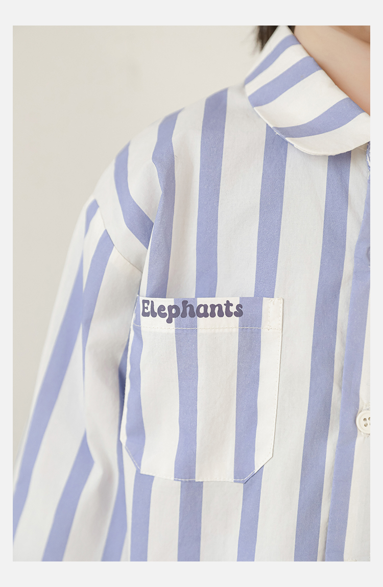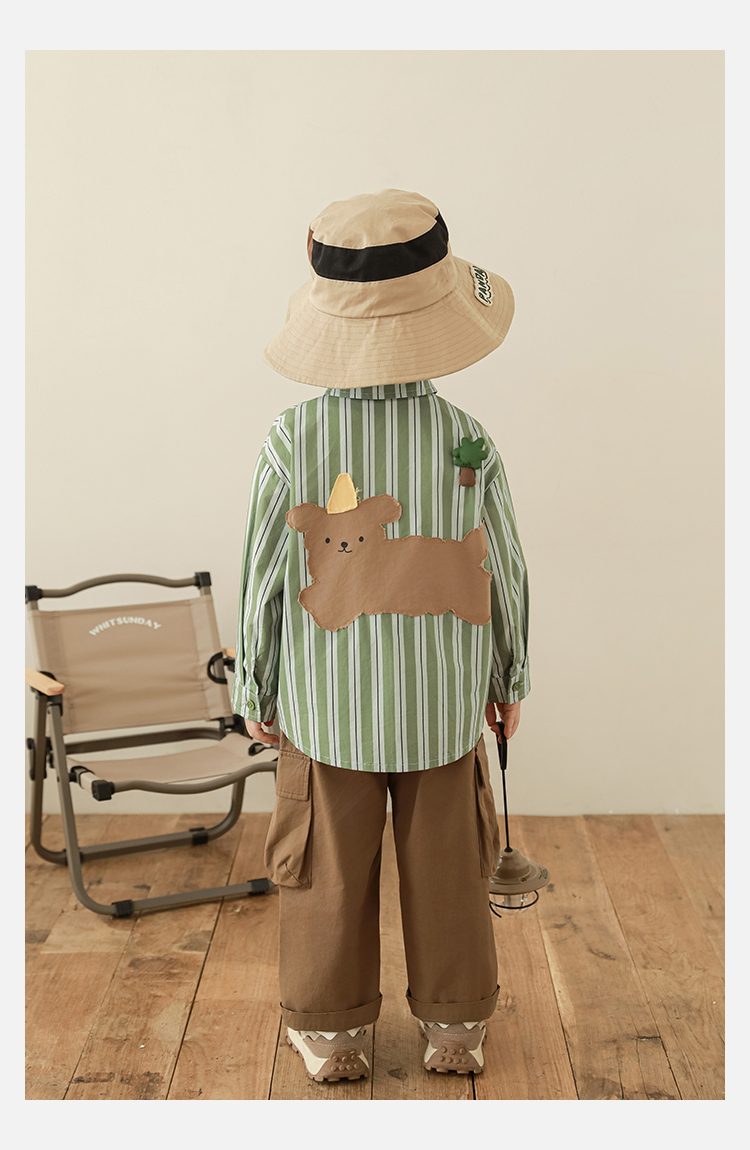 Wuri Boys의 2025 년 봄 새 긴 소매 옷깃 줄무늬 셔츠 캐주얼 느슨한 올매치 어린이 셔츠스토어 가기
