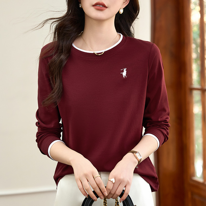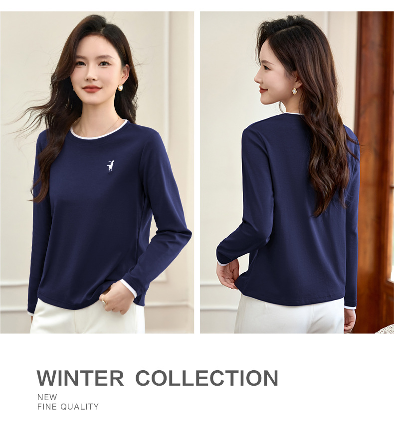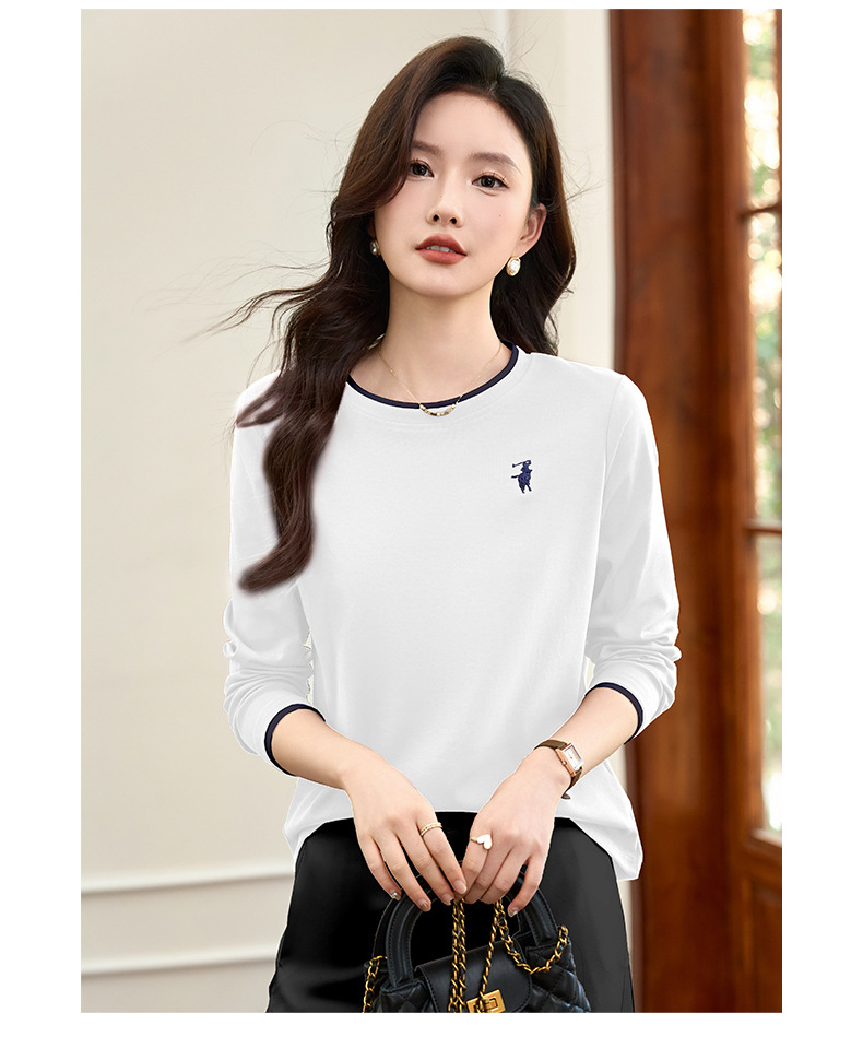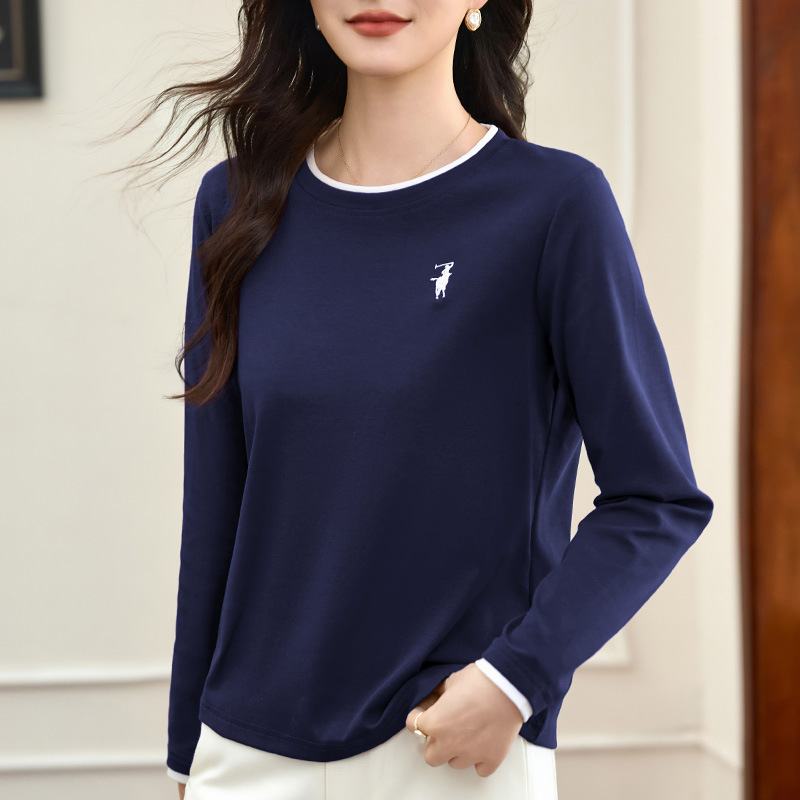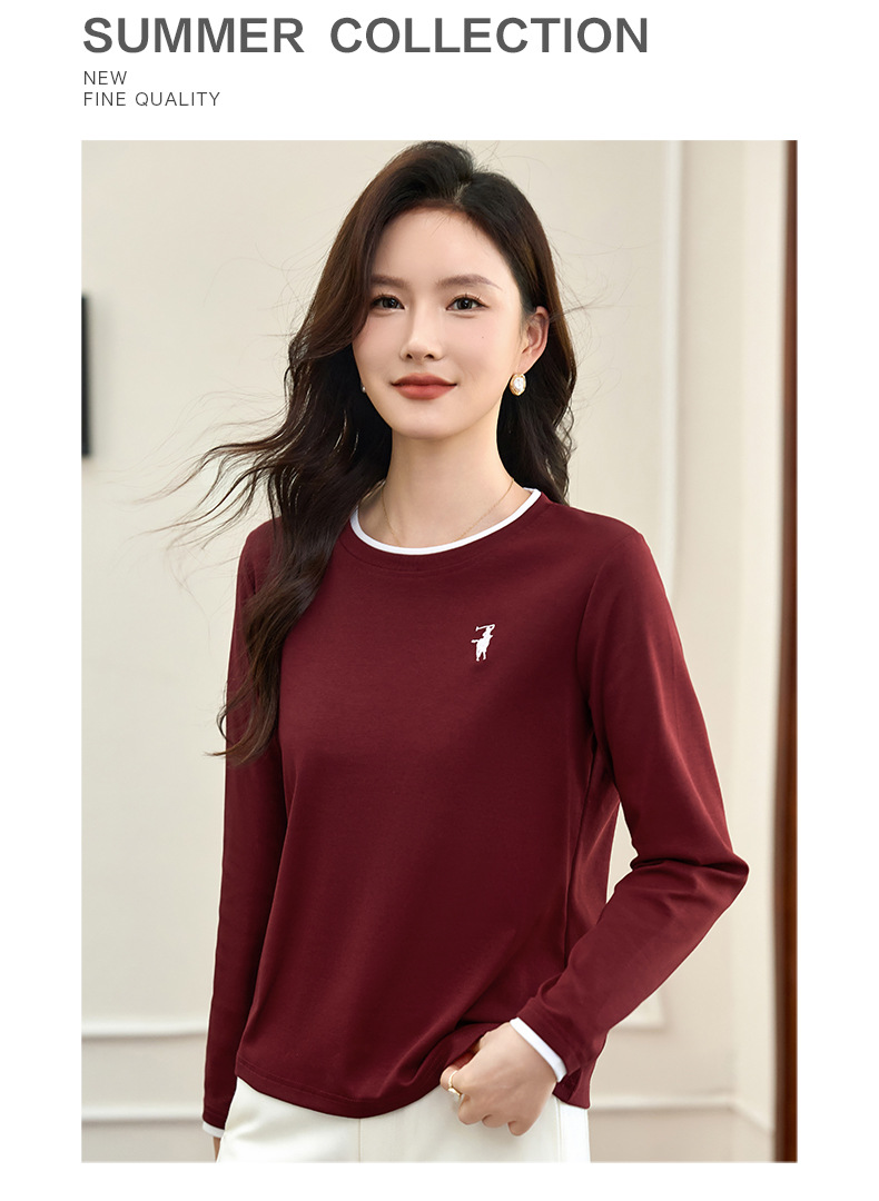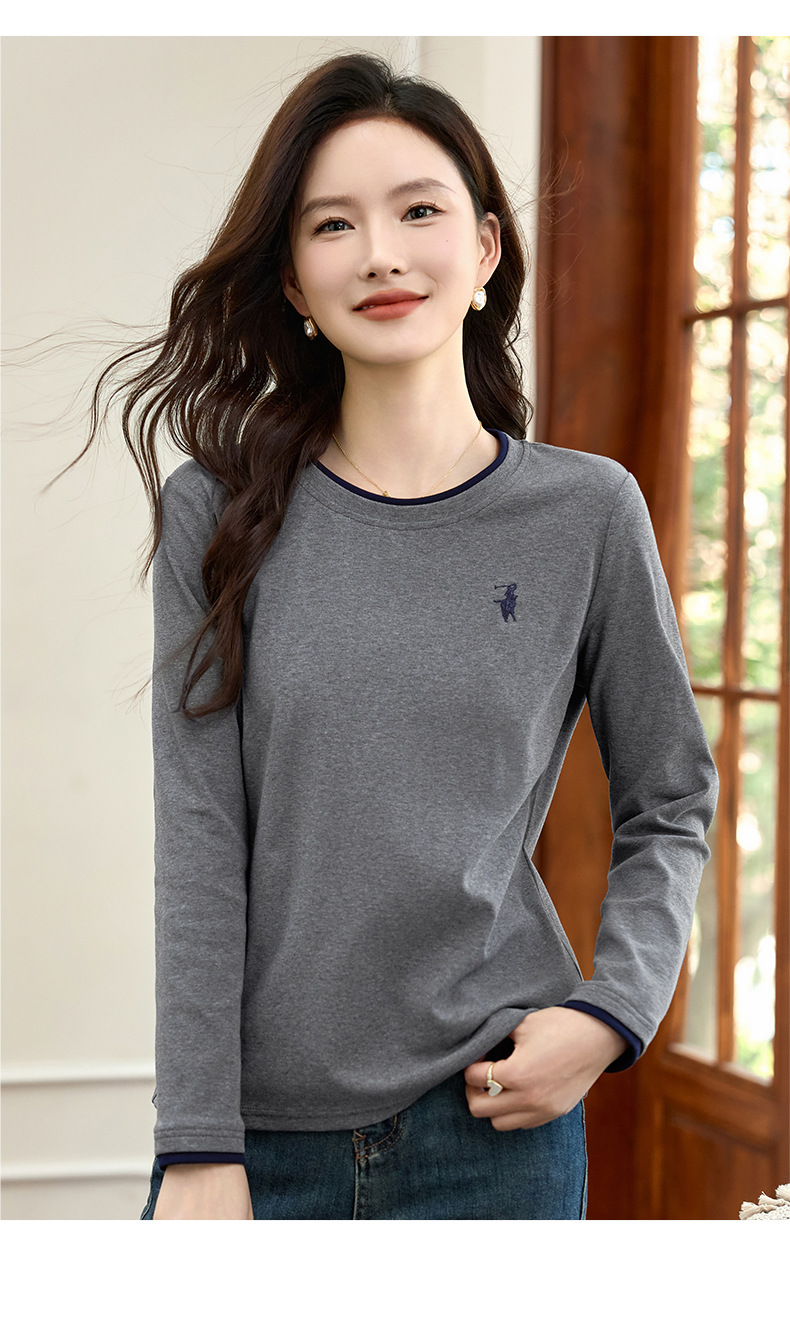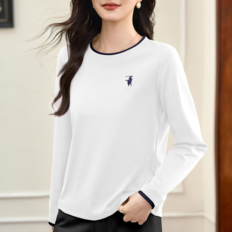 카운터 브랜드 봄과 가을 여성 크루 넥 티셔츠 긴 소매 얇은 유행 슬림 핏 올 매치 퓨어 코튼 하이 엔드 여성용 탑