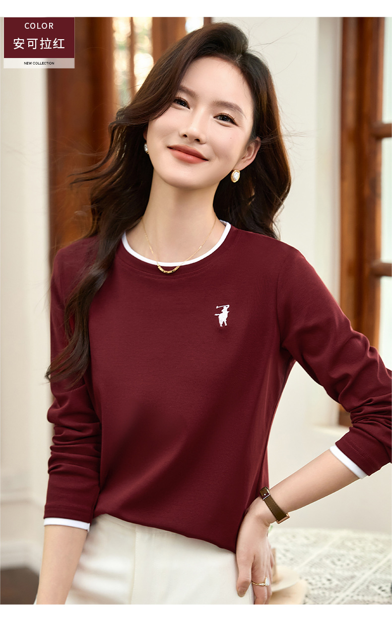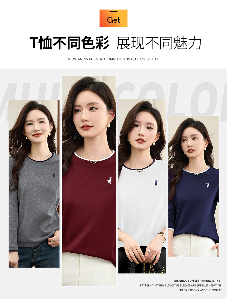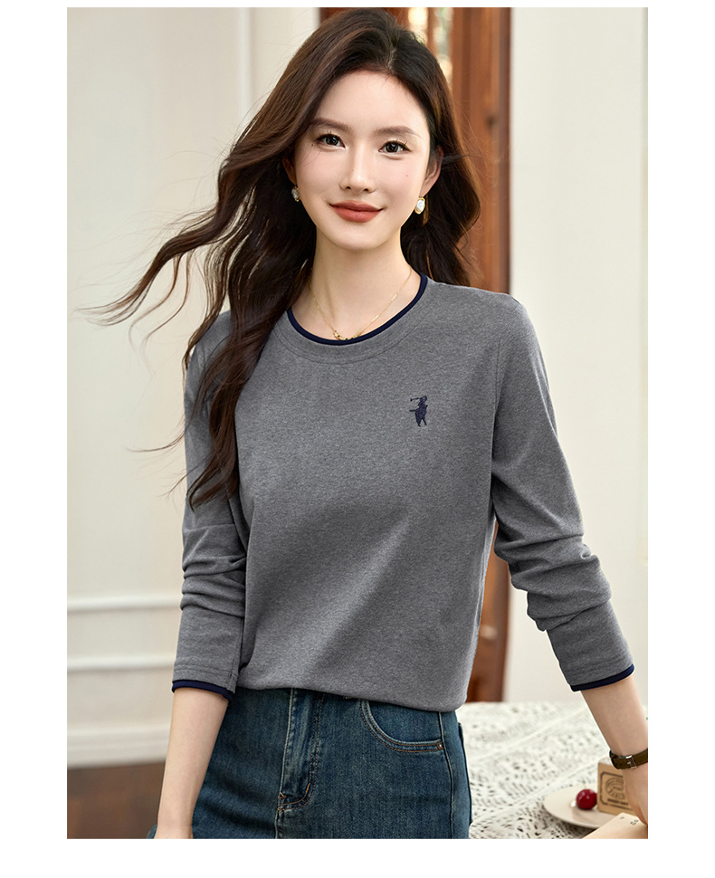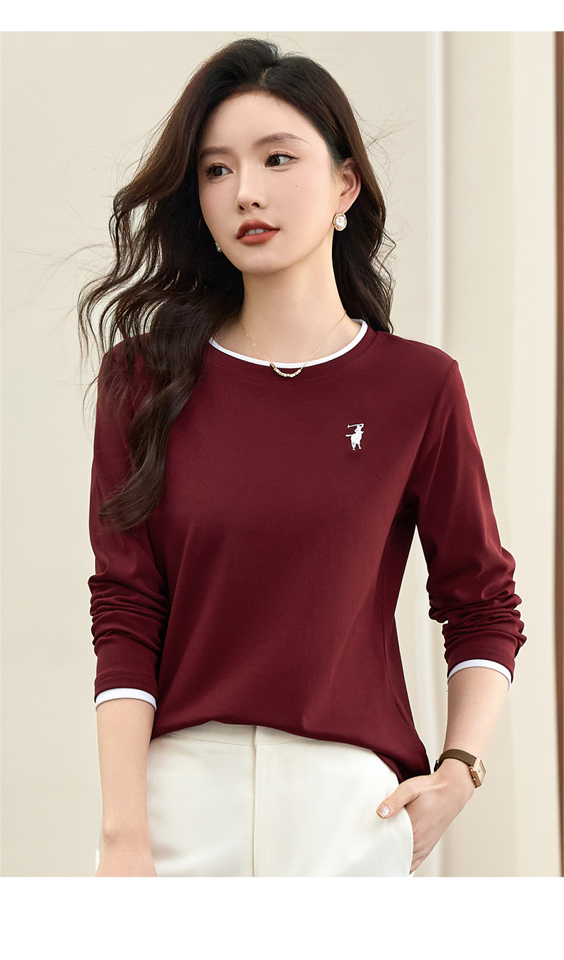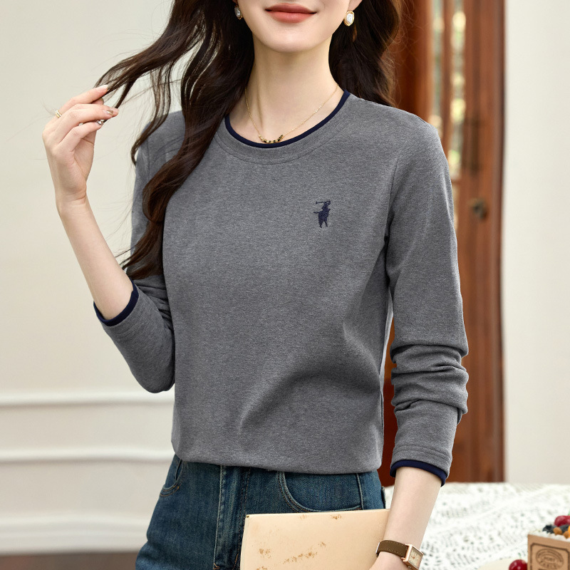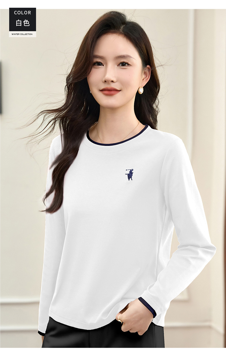 카운터 브랜드 봄과 가을 여성 크루 넥 티셔츠 긴 소매 얇은 유행 슬림 핏 올 매치 퓨어 코튼 하이 엔드 여성용 탑